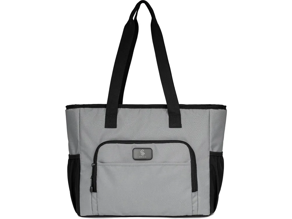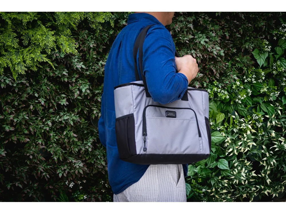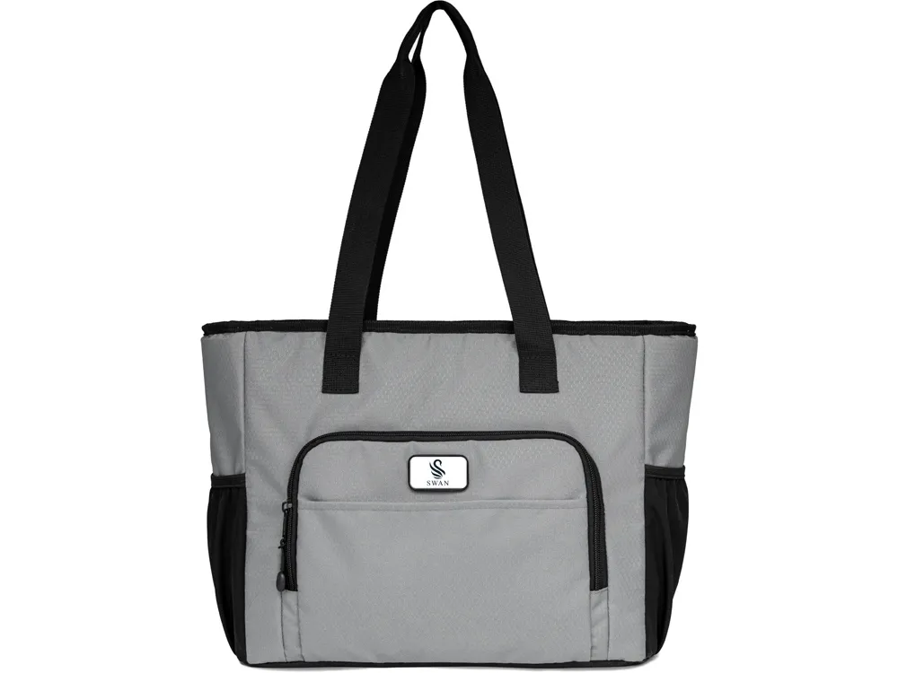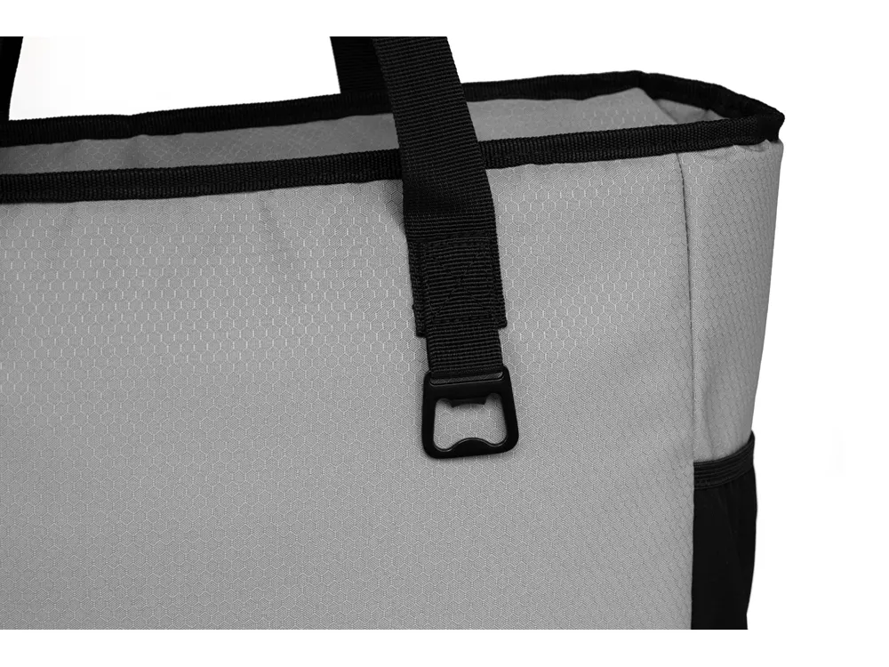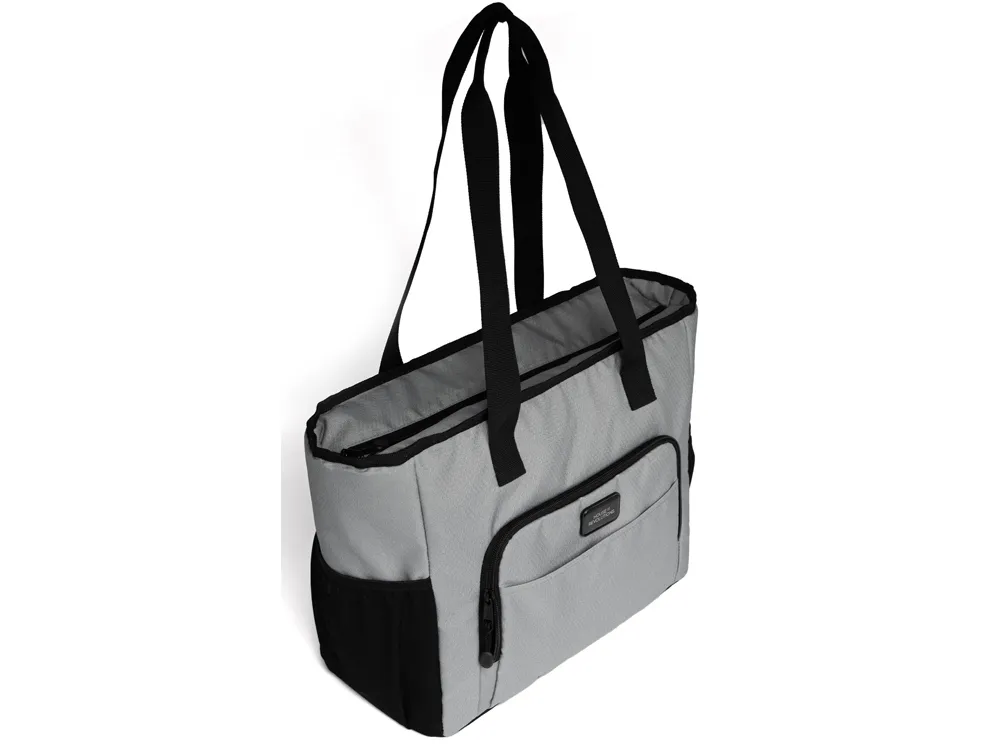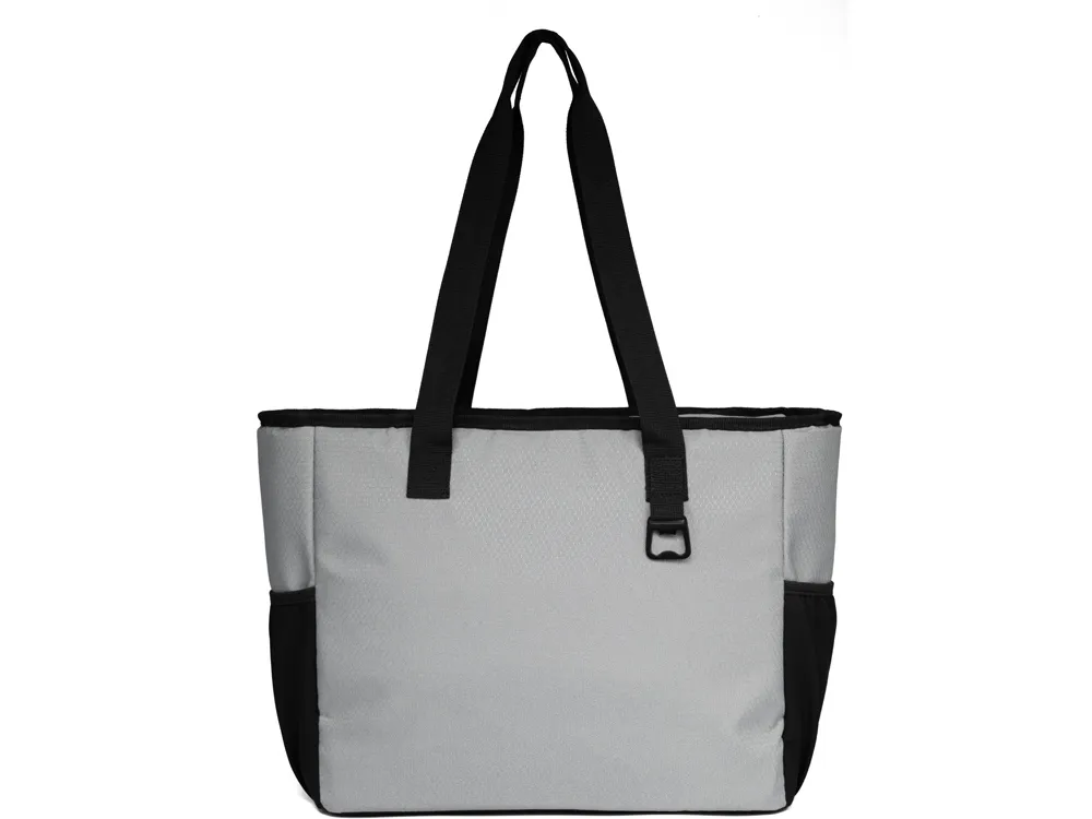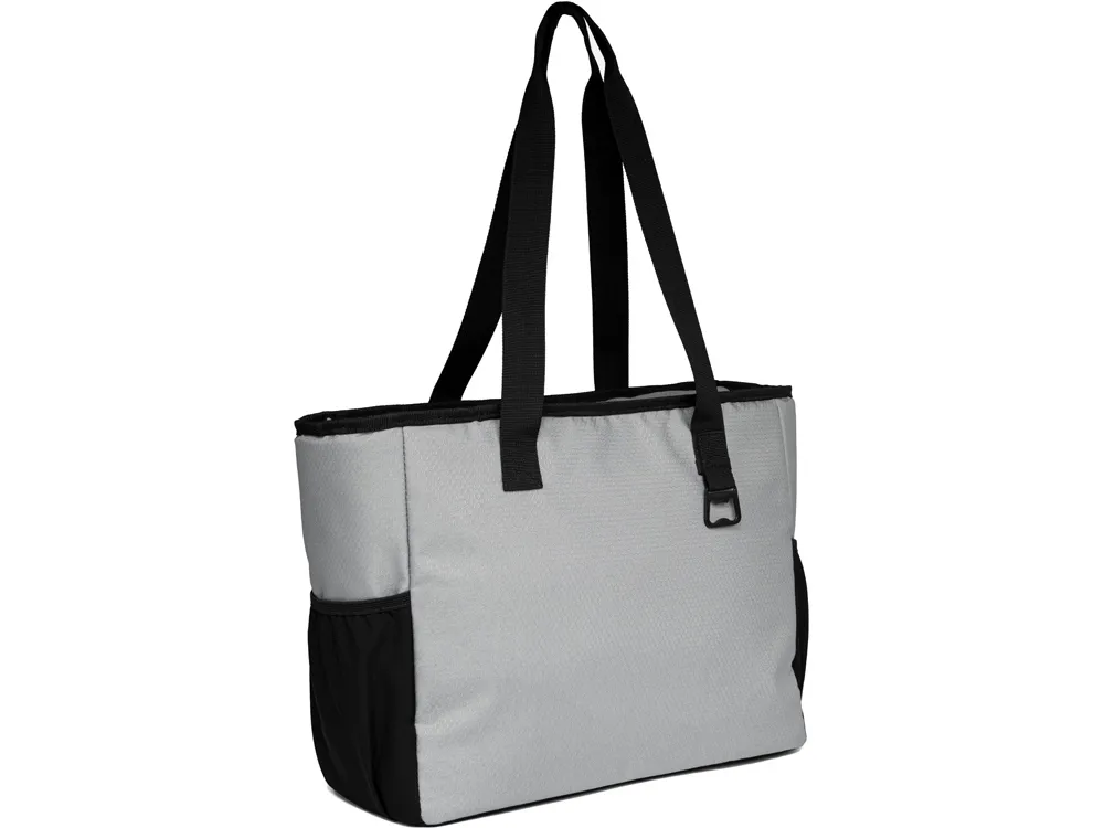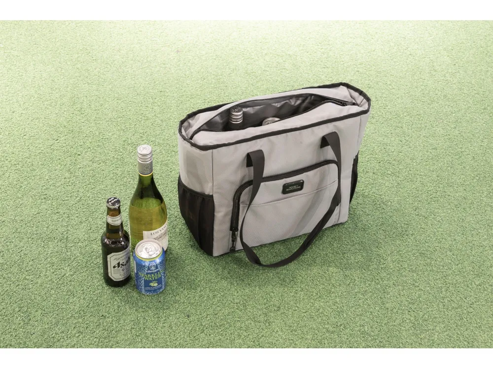 Удобная сумка-холодильник с ручками на плечо будет отличным корпоративным подарком. Универсальный размер - даже винные бутылки легко помещаются вертикально. Наружный карман на молнии можно использовать для приборов и салфеток. 2 боковых расширяющихся кармана из эластичной сетки. В комплекте открывалка для бутылок. Водостойкий материал. Комплектуется 2мя съемными шильдами под нанесение вашего логотипа - металлическим и из эко кожи.
