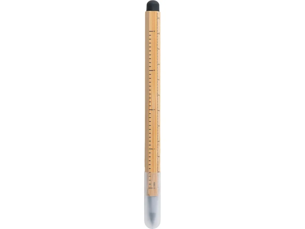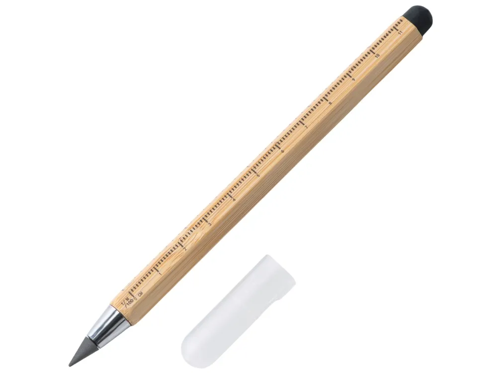 Карандаш изготовлен из натурального бамбука. В отличие от обычных карандашей его не нужно точить, и он не пачкает руки. Наличие на корпусе двух линеек, в сантиметрах и в дюймах, позволит при необходимости моментально измерить что-либо или перевести одни единицы в другие. С обратной стороны карандаша есть стилус, которым удобно что-то делать на телефоне или планшете. • Долго служит • Не нужно точить • Наличие шкал на линейке в сантиметрах и дюймах • Стилус на обратном конце