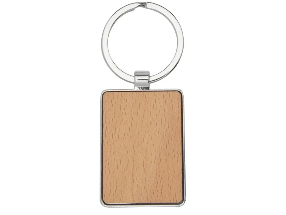 Прямоугольный брелок премиум-качества из буковой древесины с металлическим корпусом из цинкового сплава, поставляемый в коричневой упаковке из шрифтовой бумаги. Размер 4 x 3 см. Пригоден для лазерной гравировки.