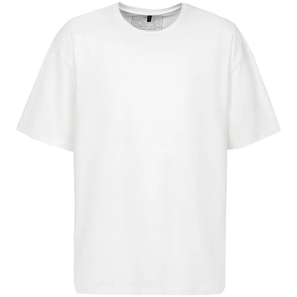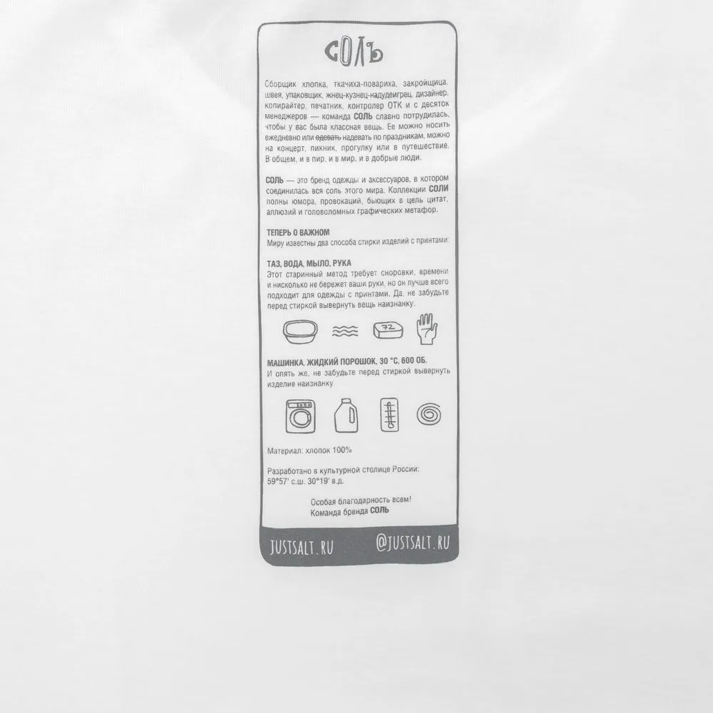 На изнаночной стороне футболки напечатан принт с информацией о бренде и инструкцией по уходу за изделием.
