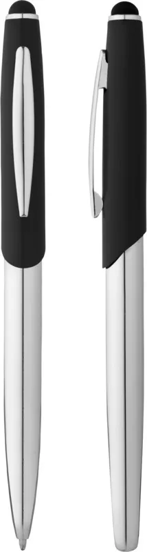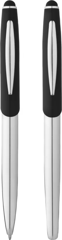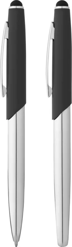 Изящная шариковая ручка-стилус и ручка-роллер с матовой верхней частью и блестящей хромированной нижней частью и соответствующими хромированными вставками в выдвижной коробке Avenue (размер: 16,9 x 5,2 x 2 см). Металл.