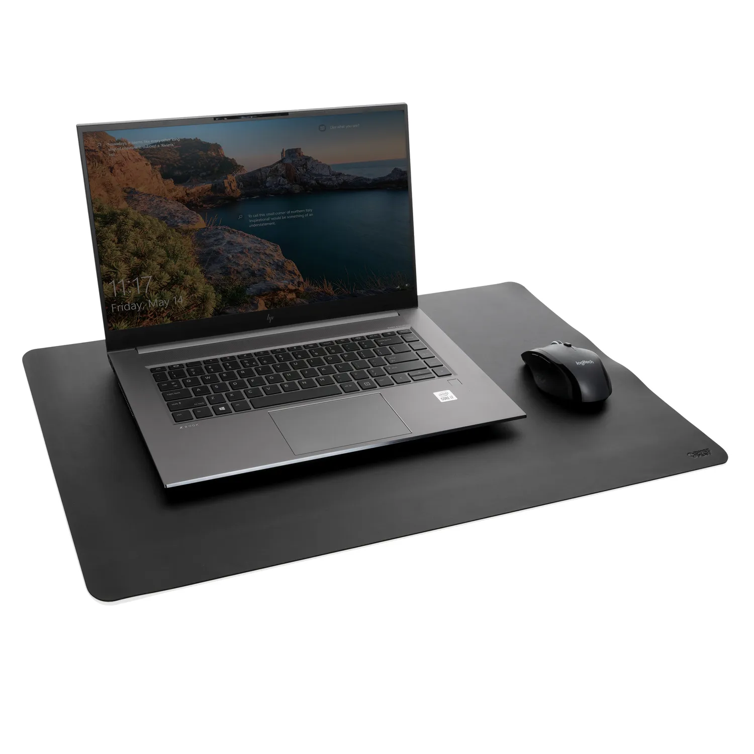 Роскошный настольный коврик изготовлен из сертифицированных GRS (глобальный стандарт вторичной переработки) переработанных материалов. Сертификация GRS гарантирует полный контроль всей цепочки поставок от переработки до готового изделия. Большая и гладкая поверхность товара идеально подходит для создания личного рабочего пространства, где бы вы ни находились. Коврик достаточно большой, чтобы комфортно разместить на нем ноутбук и мышку. Размер: 60 x 40 x 0,2 см. Поставляется свернутым в рулон с удобным ремешком для фиксации. Содержание вторичного сырья: 57% от общего веса изделия. Не содержит ПВХ.