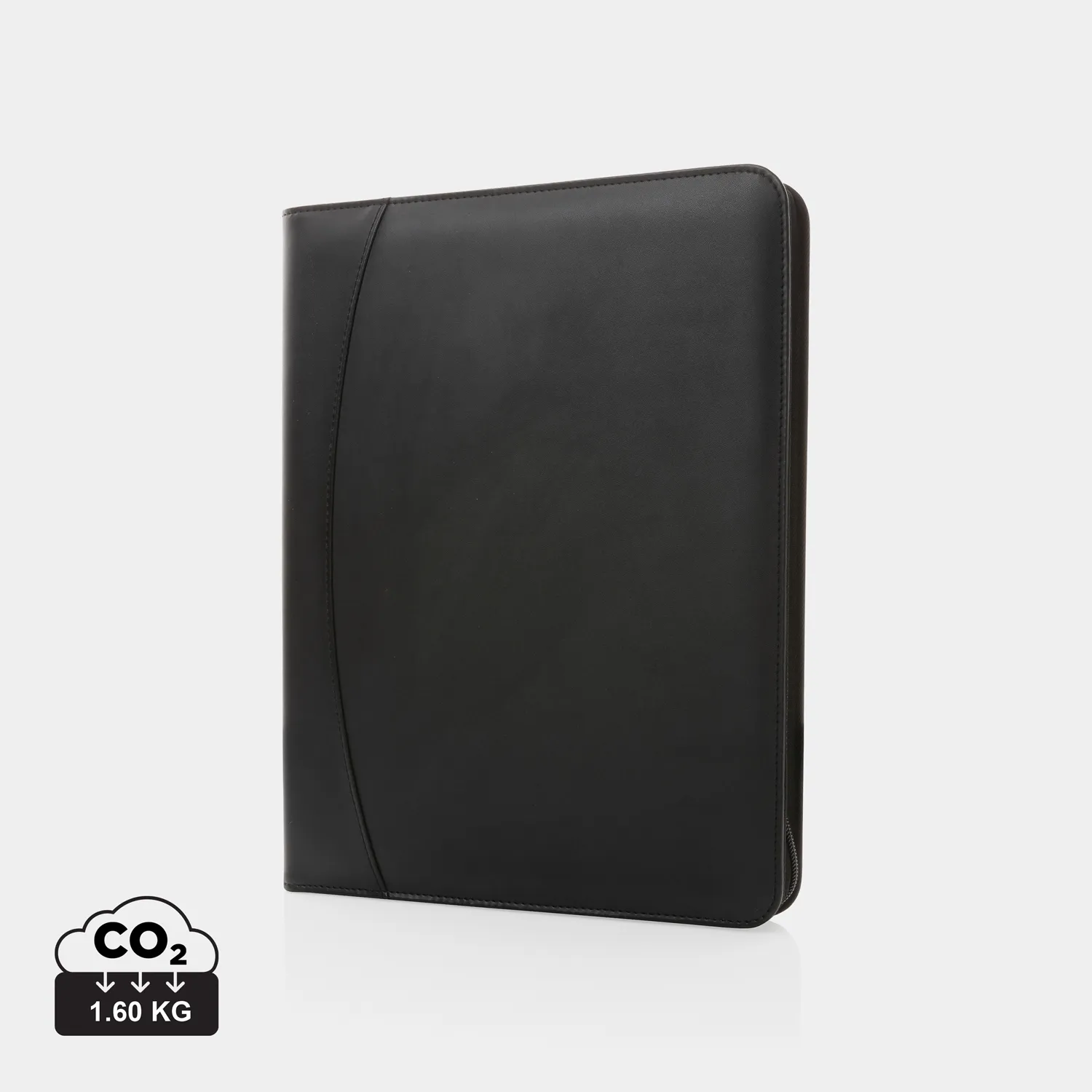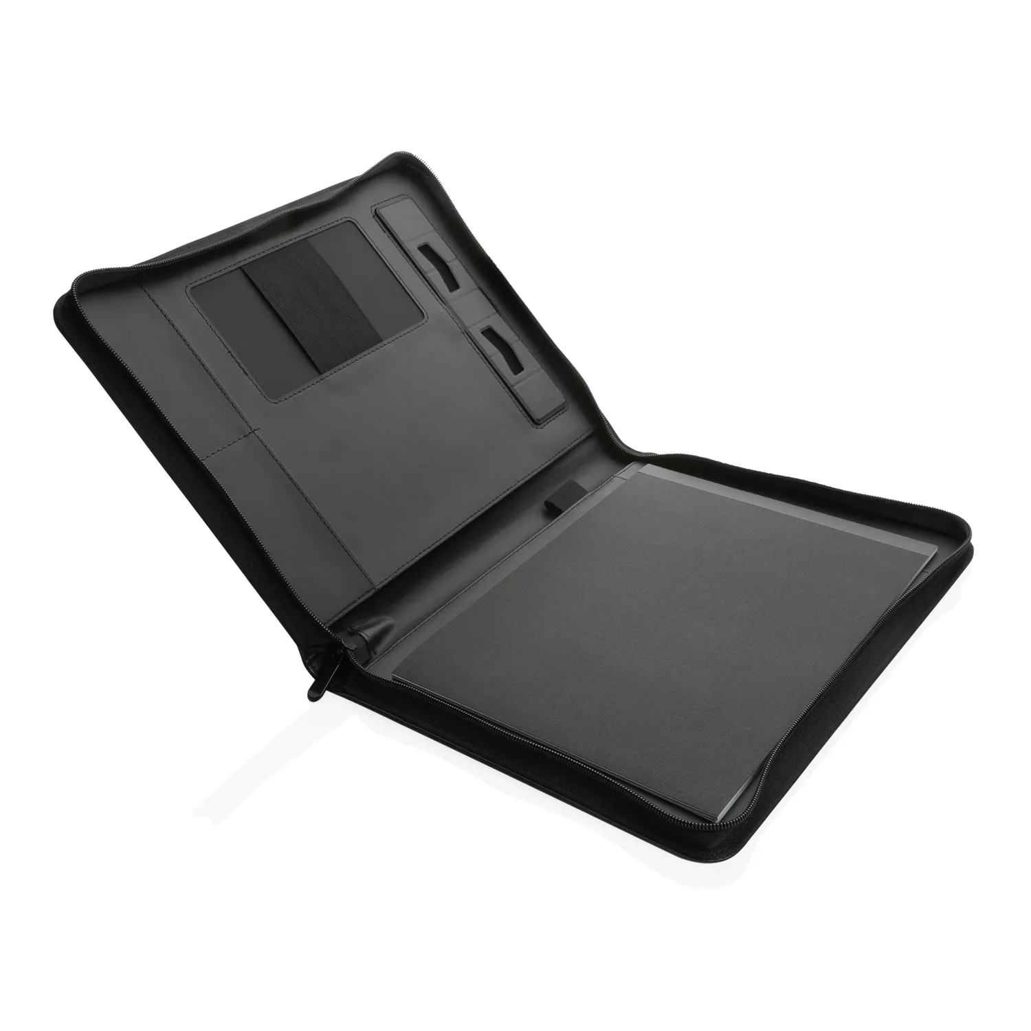 Органайзер Deluxe Tech на молнии изготовлен с использованием переработанных материалов по стандарту декларирования вторичной переработки (RCS). Сертификация RCS гарантирует полный контроль всей цепочки поставок вторичных материалов: от переработки до готового изделия. Роскошный подарок! Для записей предусмотрен блокнот из переработанной бумаги формата А4, 20 листов плотностью 64 г/м2. Есть подставка для смартфона, держатель для аккумулятора, петля для ручки и 2 кармашка для визиток. Органайзер изготовлен из 100% переработанного полиуретана, сертифицированного RCS. Общее содержание вторичного сырья: 14% от общего веса изделия. Не содержит ПВХ.