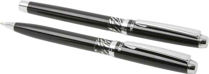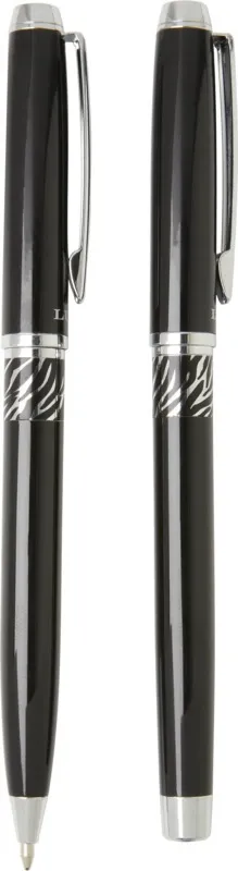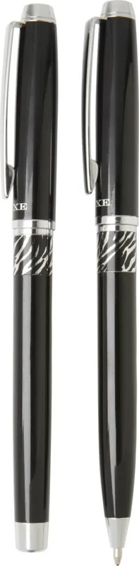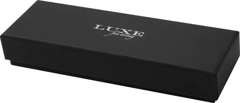 Шариковая ручка и ручка-роллер с декоративным узором на корпусе. Шариковая ручка предварительно заполнена синими чернилами, а ручка-роллер предварительно заполнена черными чернилами. Упакована в подарочную коробку LUXE. Латунь.