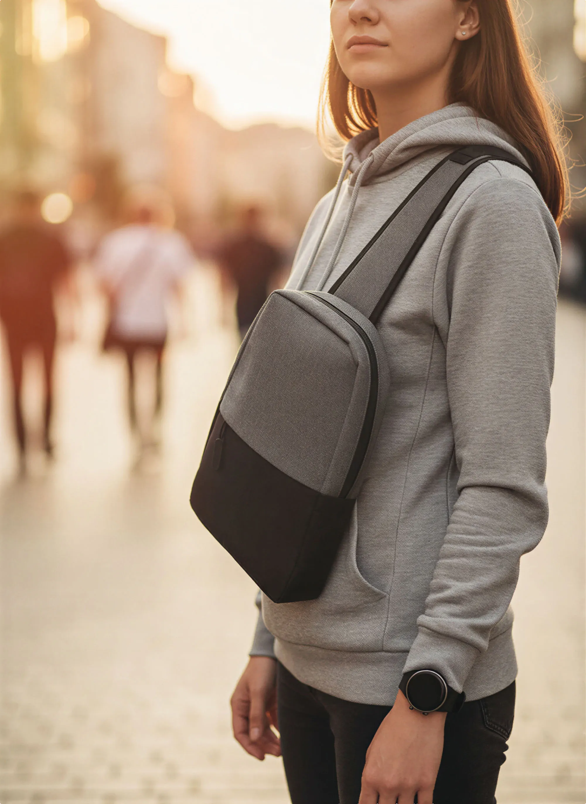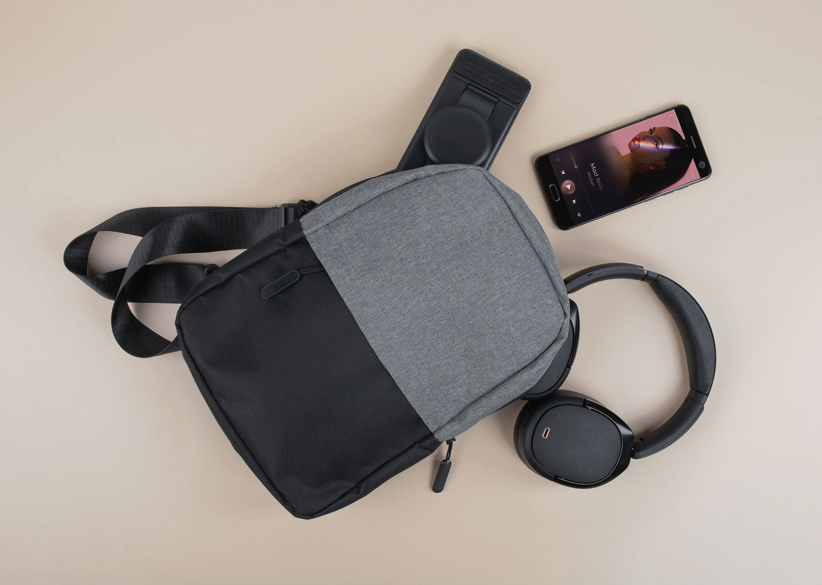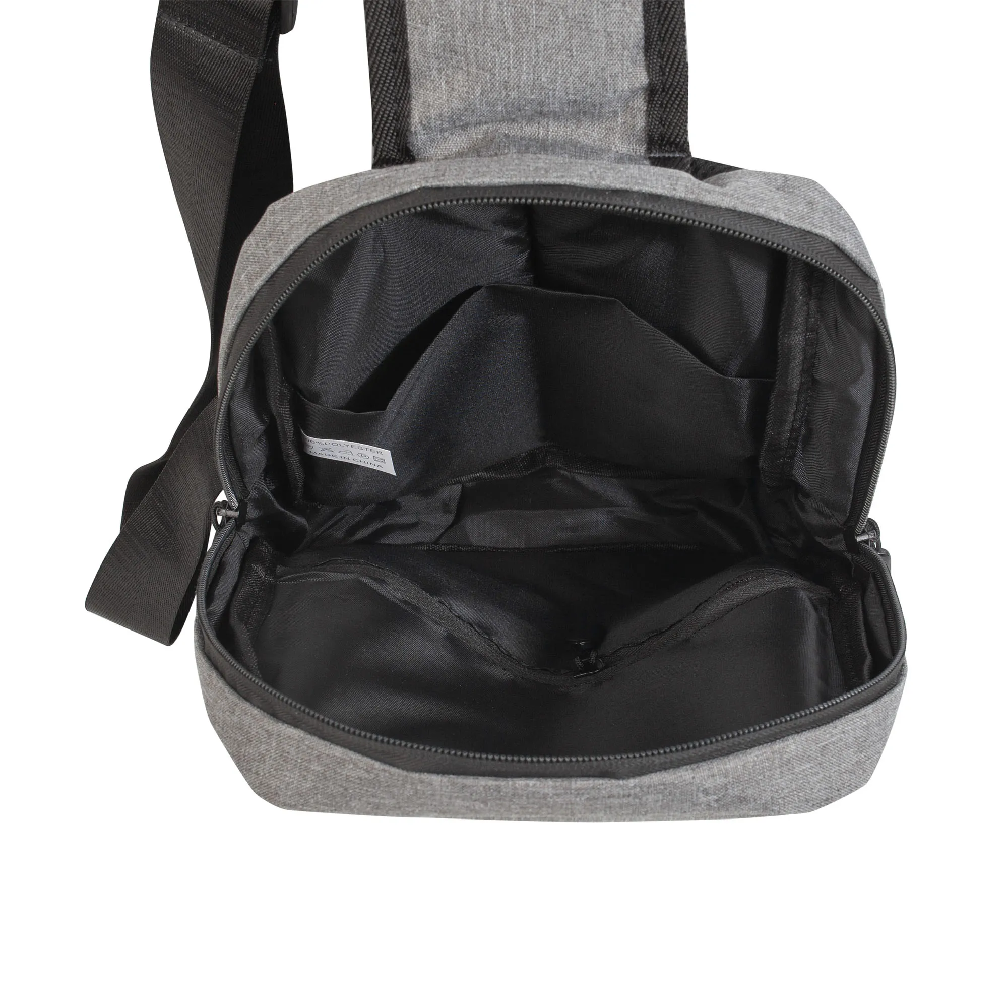 Трендовая сумка через плечо выполнена из полиэстера плотностью 300D. Привлекательный городской дизайн сочетает в себе классические серый и черный цвета.