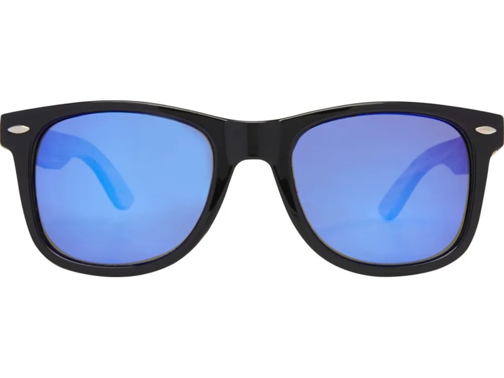 Солнцезащитные очки Hiru с оправой из переработанного PET-пластика/бамбука изготовлены из экологически чистых материалов с соблюдением самых высоких стандартов качества. Высококлассная отполированная и окрашенная оправа изготовлена из переработанного PET-пластика. Невесомые дужки с удобной посадкой изготовлены из древесины дуба, полученной из устойчивых, экологически и социально ответственных источников. Линзы имеют синее зеркальное покрытие и поляризацию, что исключает отражение солнечного света и делает эти очки идеальным вариантом для вождения автомобиля или активных занятий на свежем воздухе в зимнее или летнее время. Эти очки соответствуют требованиям стандарта EN ISO 12312-1, имеют линзы со степенью защиты UV400, которые относятся к категории 3. Поставляются с салфеткой из переработанного PET-пластика (15 x 15 см) и упакованы в подарочную коробку из переработанного картона (16,5 x 6 x 4 см). В качестве экологически чистого варианта декорирования рекомендуется лазерная гравировка.