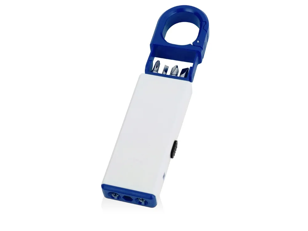 Компактный и удобный светодиодный фонарик скрывает под корпусом небольшой набор инструментов. Фонарик можно прикрепить к ключам при помощи специальной застежки. На поверхность корпуса можно разместить логотип.