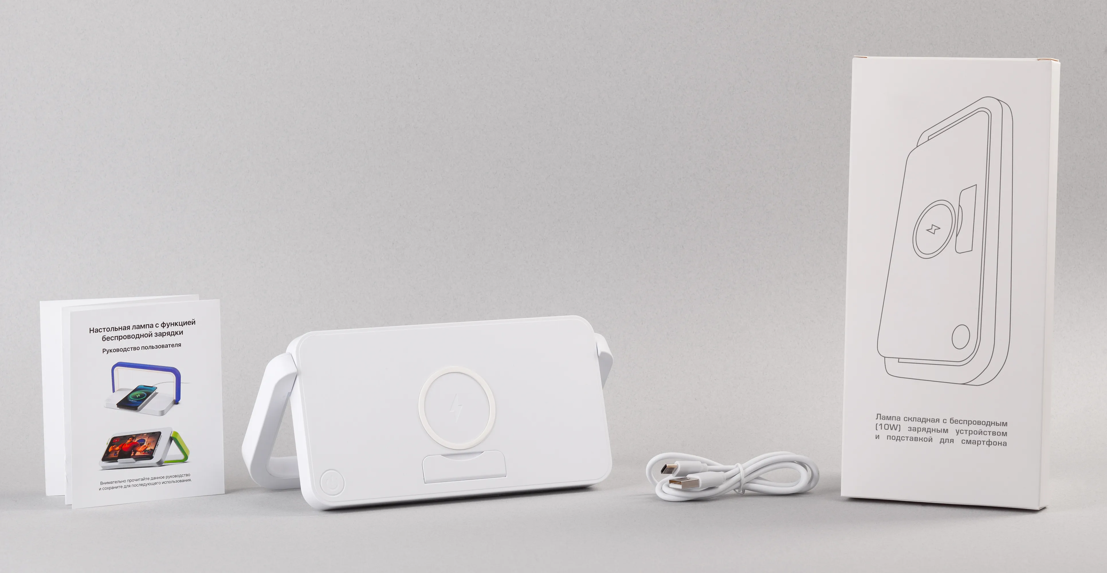 Лампа складная "Smart Light" с беспроводным (10W) зарядным устройством и подставкой для смартфона белый