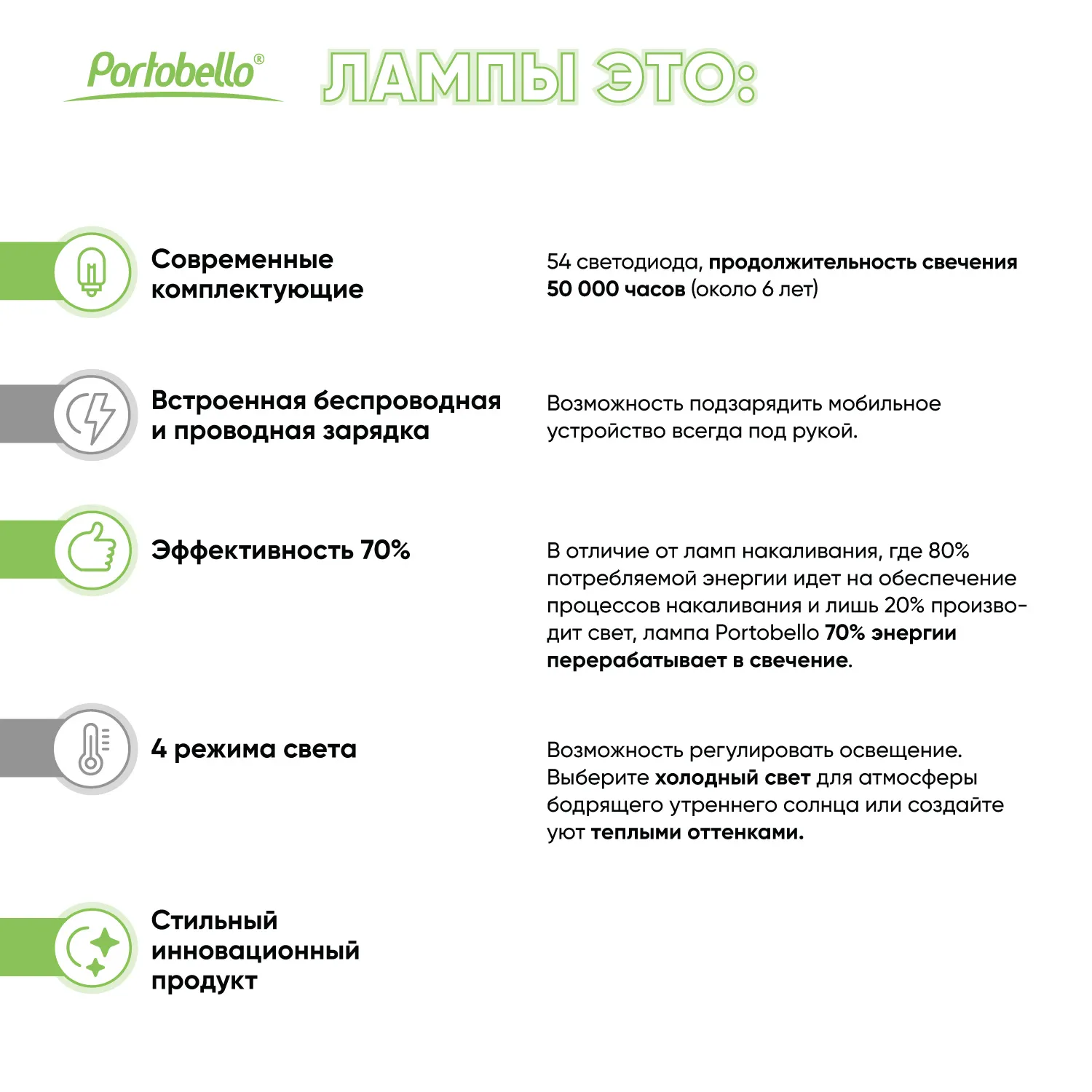 Входная мощность питания лампы 5V-2A предусмотрена для работы одной функции (освещение/беспроводная зарядка устройств/ зарядка устройств через USB выход)