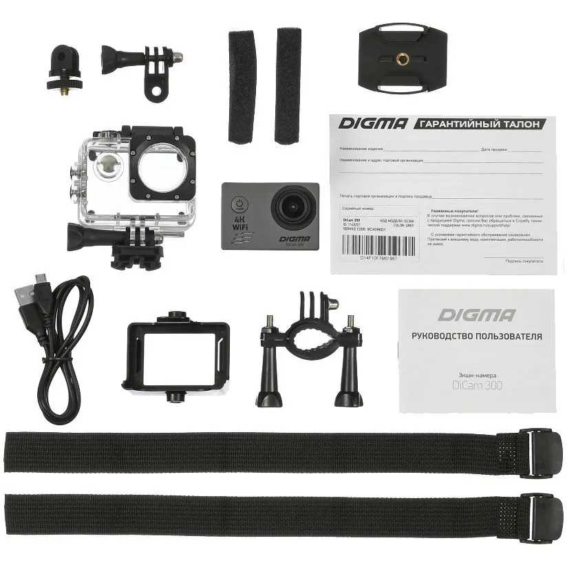 Экшн-камера Digma DiCam 300 идеально подходит активным людям, живущим на большой скорости. Полная комплектация позволяет использовать камеру в любой ситуации: ее можно крепить на велосипед, на шлем, в авто и даже на повязку-бандаж.