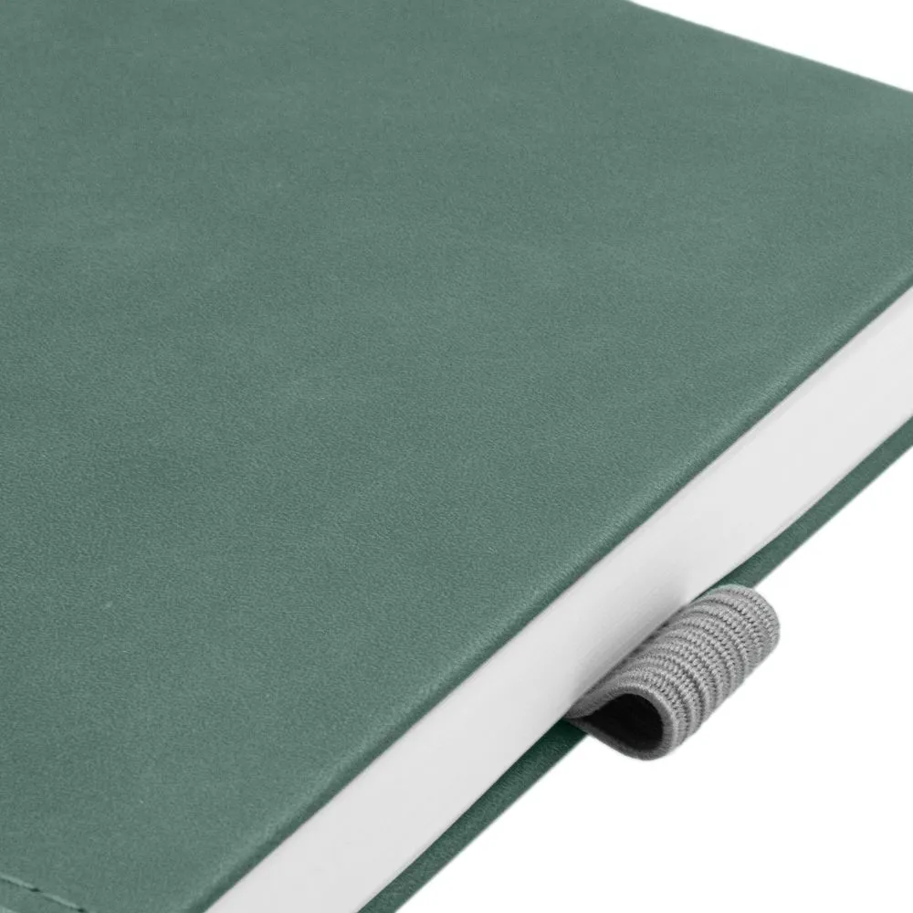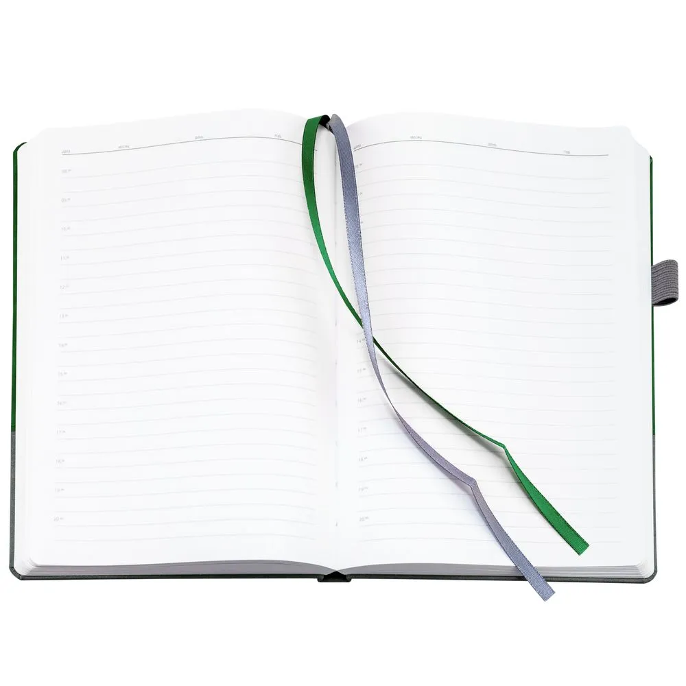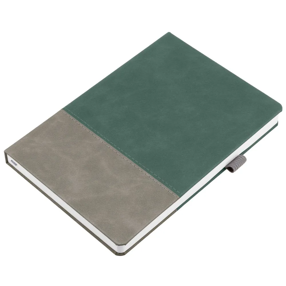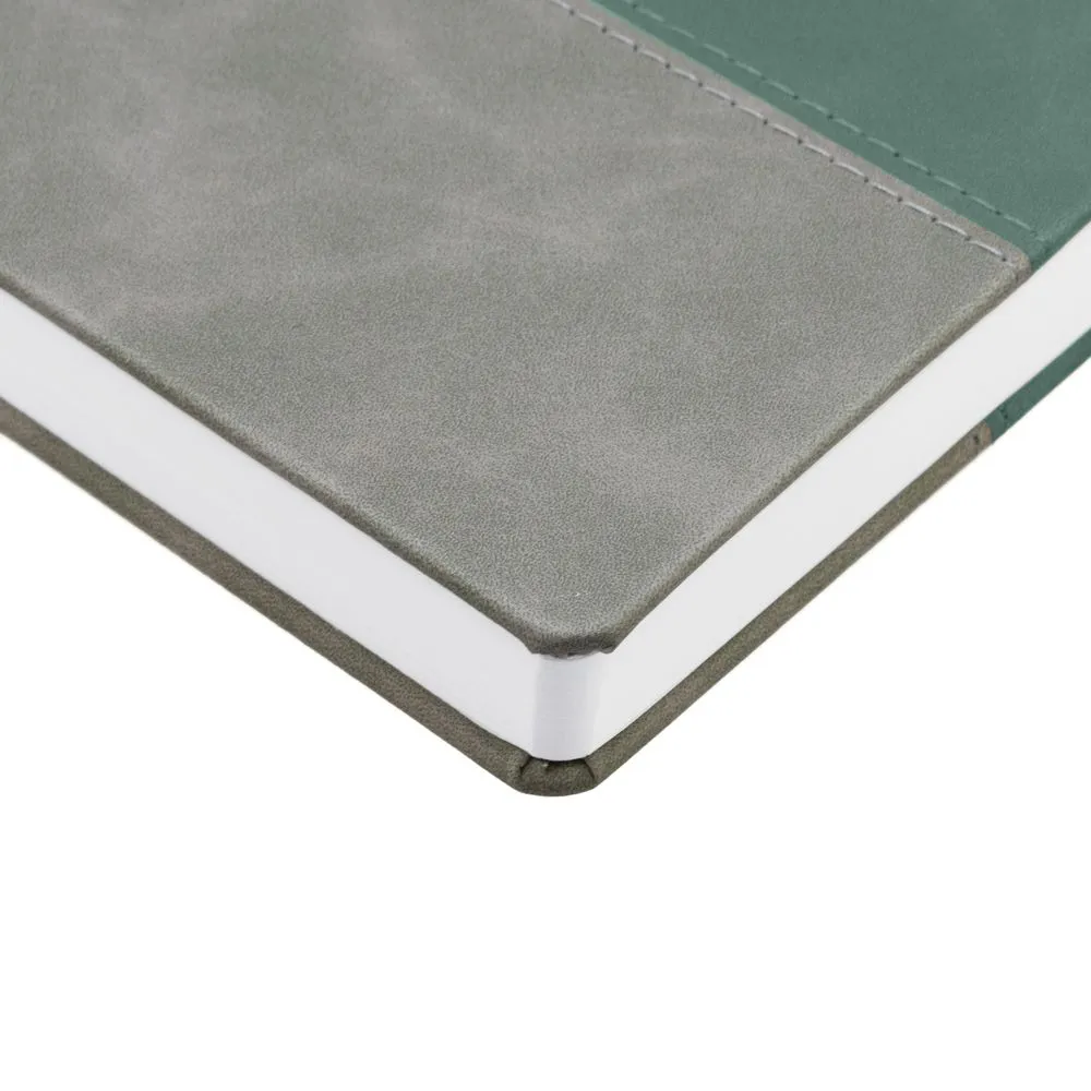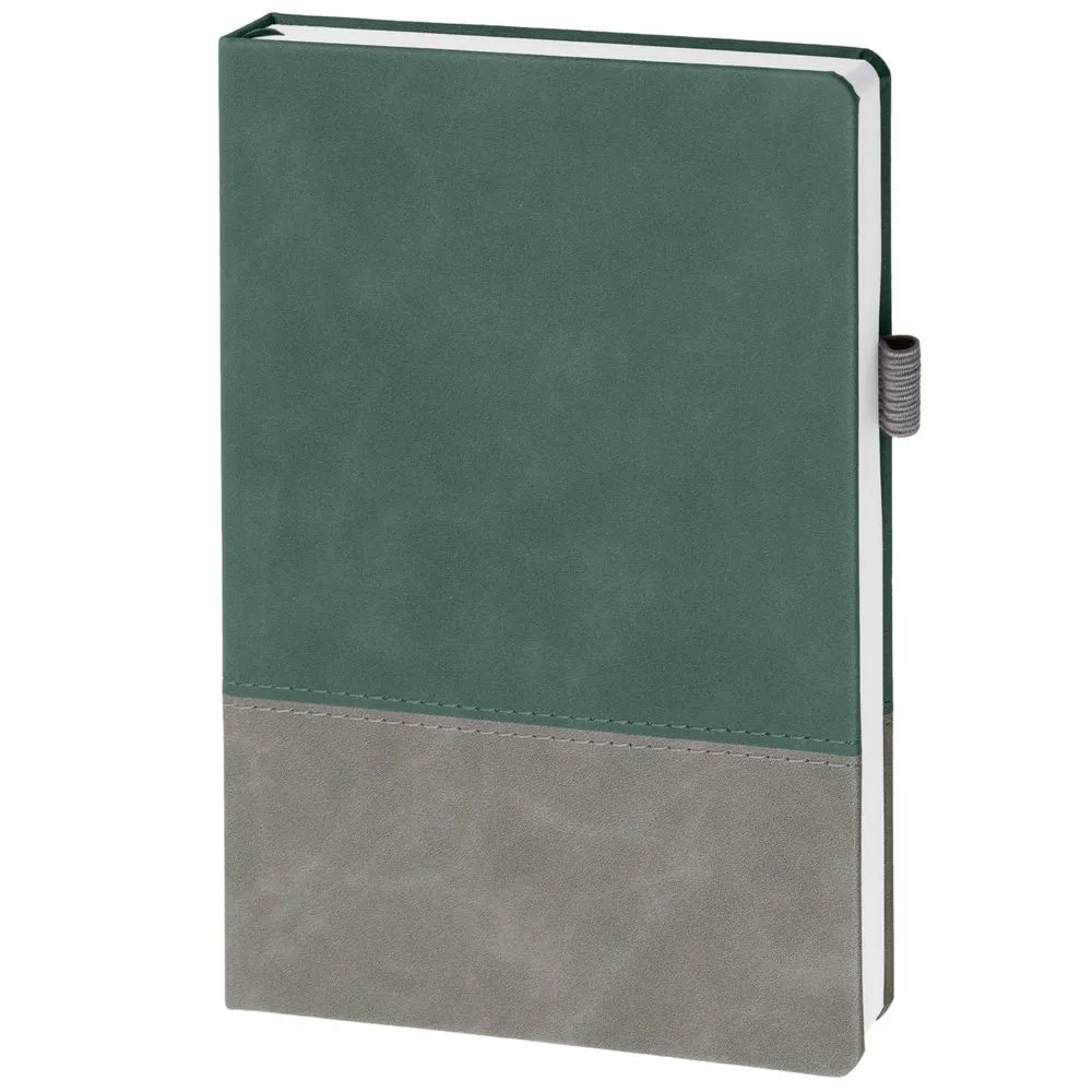 Ежедневник с твердой обложкой, без поролона, со сшивкой материалов Nubuck Touch, серый СС, и Nubuck Touch оранжевый ОО, дополнен двойным ляссе и петлей-резинкой для ручки.