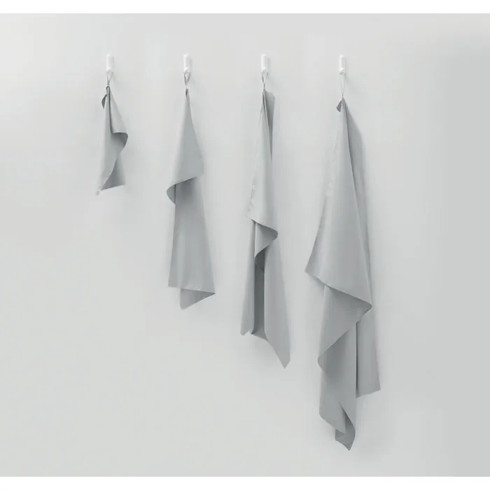 Полотенце из микрофибры (90% полиэстера и 10% полиамида) с эластичной петлей для подвешивания. Легкое и быстросохнущее. Размер 100 см x 150 см.