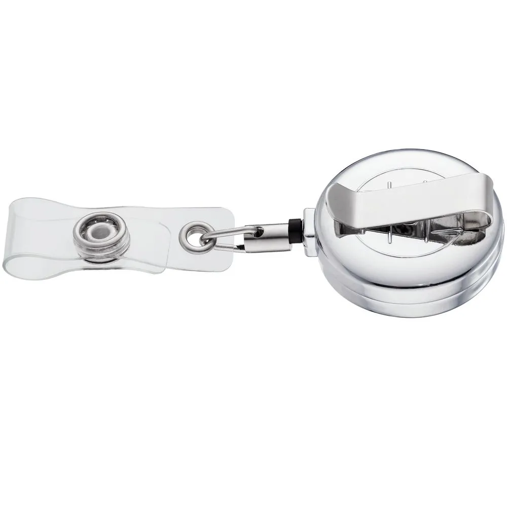 Ретрактор крепится к одежде, а с другой стороны можно поместить бейдж, визитку или магнитную карту. В корпусе спрятан сворачивающийся шнур, который позволяет при необходимости демонстрировать содержимое держателя, не снимая его.