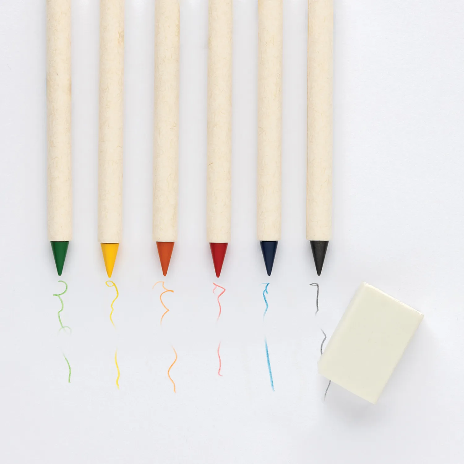 Набор вечных цветных карандашей с блокнотом идеально подойдет для всех ваших творческих проектов. В комплект входят шесть карандашей насыщенных цветов: красный, желтый, синий, зеленый, оранжевый и черный, каждый длиной 9 см. Карандаши изготовлены из переработанной бумаги от молочных пакетов (69%, сертификат GRS) и имеют гладкий графитовый стержень для удобного рисования. Вместе с карандашами в набор входит блокнот на 50 листов, идеальный для набросков или записи идей. Карандаши поставляются в крафтовой упаковке FSC®. В отличие от обычных цветных карандашей, которые пишут около 200 метров, вечные карандаши Micki Infinity могут прочертить линию до 20 000 метров. Они легко стираются и заменяют до 100 обычных цветных карандашей, что делает их экологичным выбором. В комплекте идет ластик.
