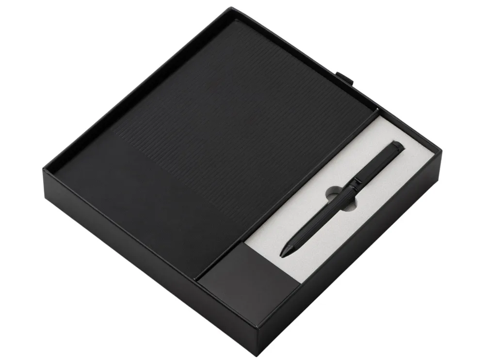 Готовый подарочный офисный набор - это полезный корпоративный подарок, который можно брендировать разными способами. Необычная коробка в форме подарочного пакета добавит подарку эффектности и оригинальности. В подарочный набор входят: - блокнот формата А5 на 80 листов. Бумага плотностью 70г/м2 имеет сертификат ответственного лесопользования FSC; - шариковая ручка с металлическим корпусом, пишущим узлом Premec и мягкими немецкими чернилами Dokumental. Цвет чернил синий; - подарочная коробка с ручками-лентами, напоминающая подарочный пакет. Все предметы набора выполнены в едином цвете