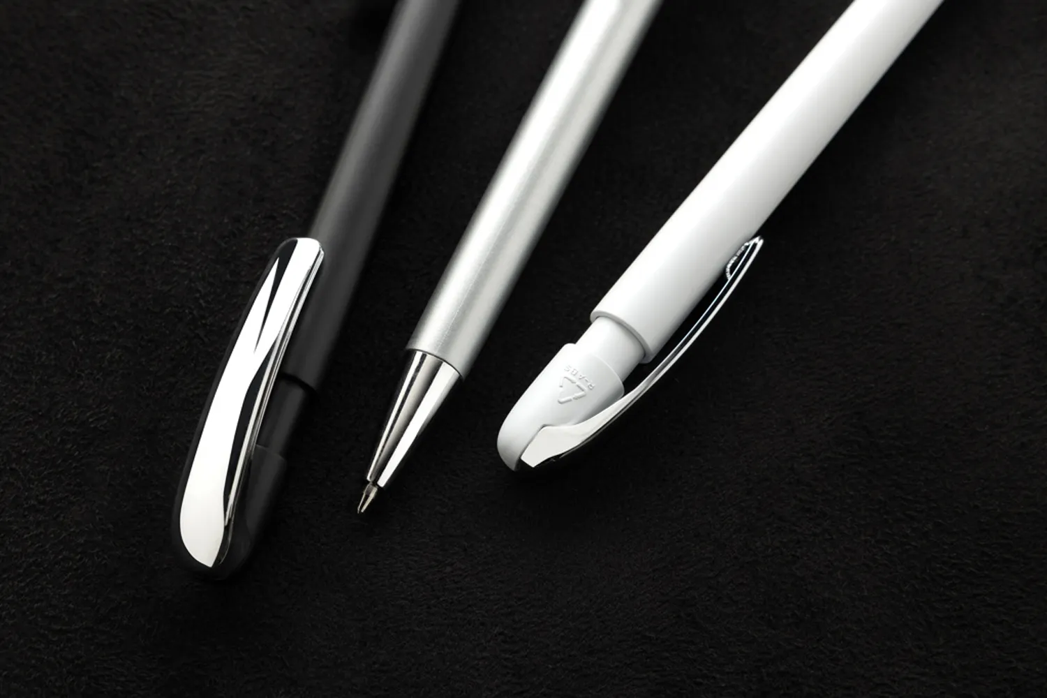Шариковая ручка с элегантным хромированным металлическим клипом. Оснащена стержнем с немецкими синими чернилами Dokumental®, которых хватит, чтобы прочертить линию до 1200 метров. Пишет мягко и плавно. На 55% состоит из переработанного ABS-пластика, сертифицированного GRS.