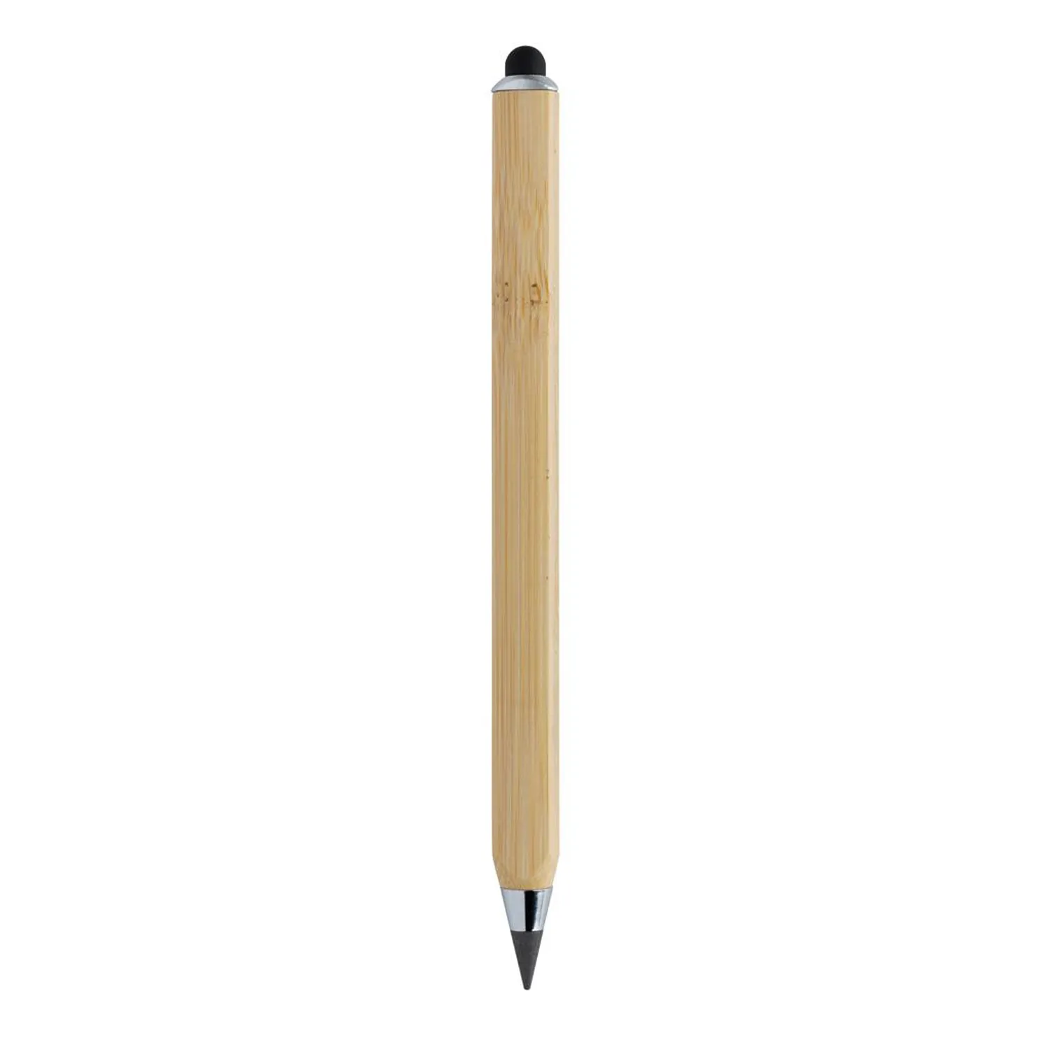 Многофункциональный вечный карандаш — экологичная альтернатива обычному, деревянному. Он прослужит намного дольше: заявленная длина письма — 20 000 метров, тогда как у обычного она составляет всего 200 метров. Так, один вечный карандаш может пережить 100 своих деревянных собратьев! Его штрих четкий и ровный, а написанное легко стирается ластиком. Сенсорный наконечник карандаша можно использовать как стилус для управления мобильным устройством. Корпус выполнен в треугольной форме и играет роль линейки. На одной грани нанесена сантиметровая разметка (до 11 см), на второй — дюймовая (4 дюйма). Карандаш изготовлен из стопроцентного бамбука, сертифицированного FSC. Крафтовая упаковка, сертифицированная FSC, тоже может служить линейкой.
