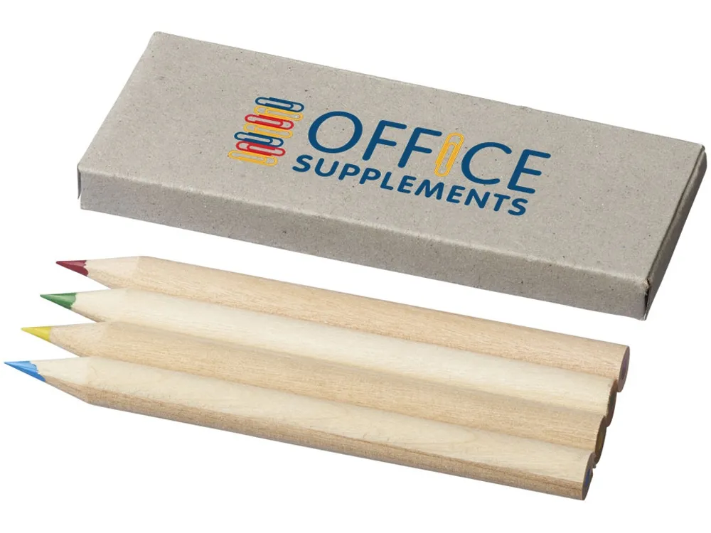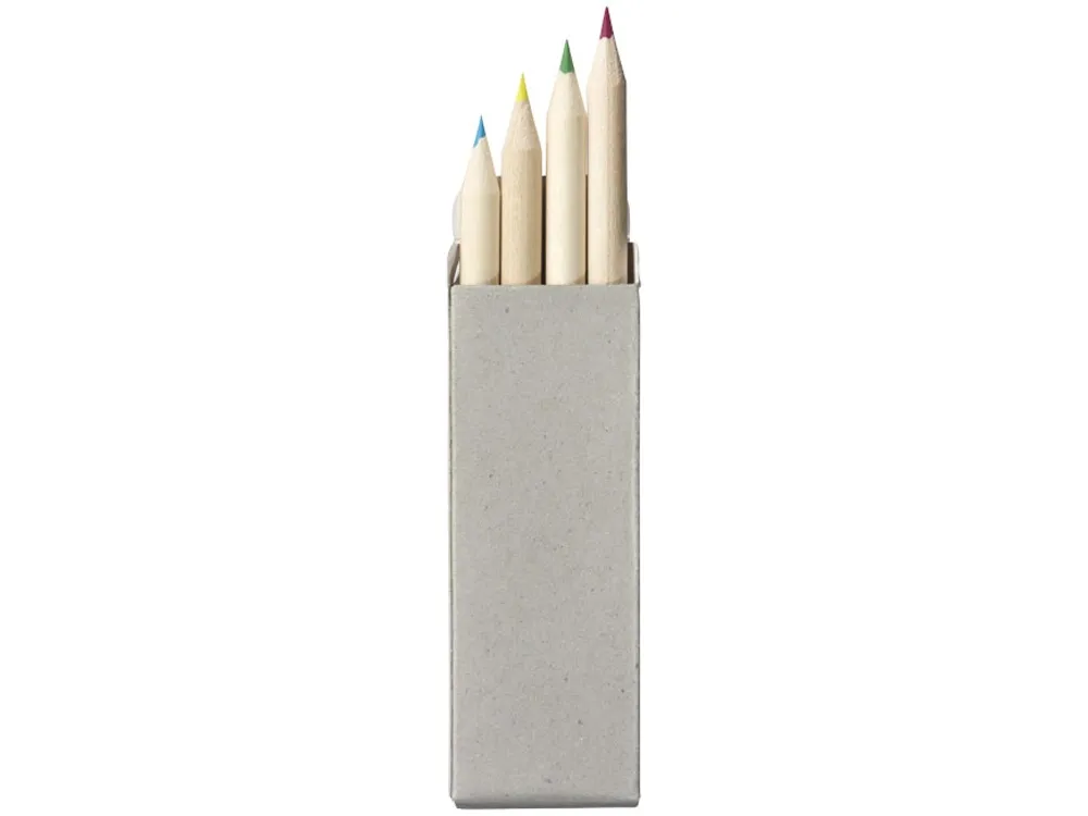 4 цветных карандаша в бумажной коробке. Толщина грифеля 2 мм.