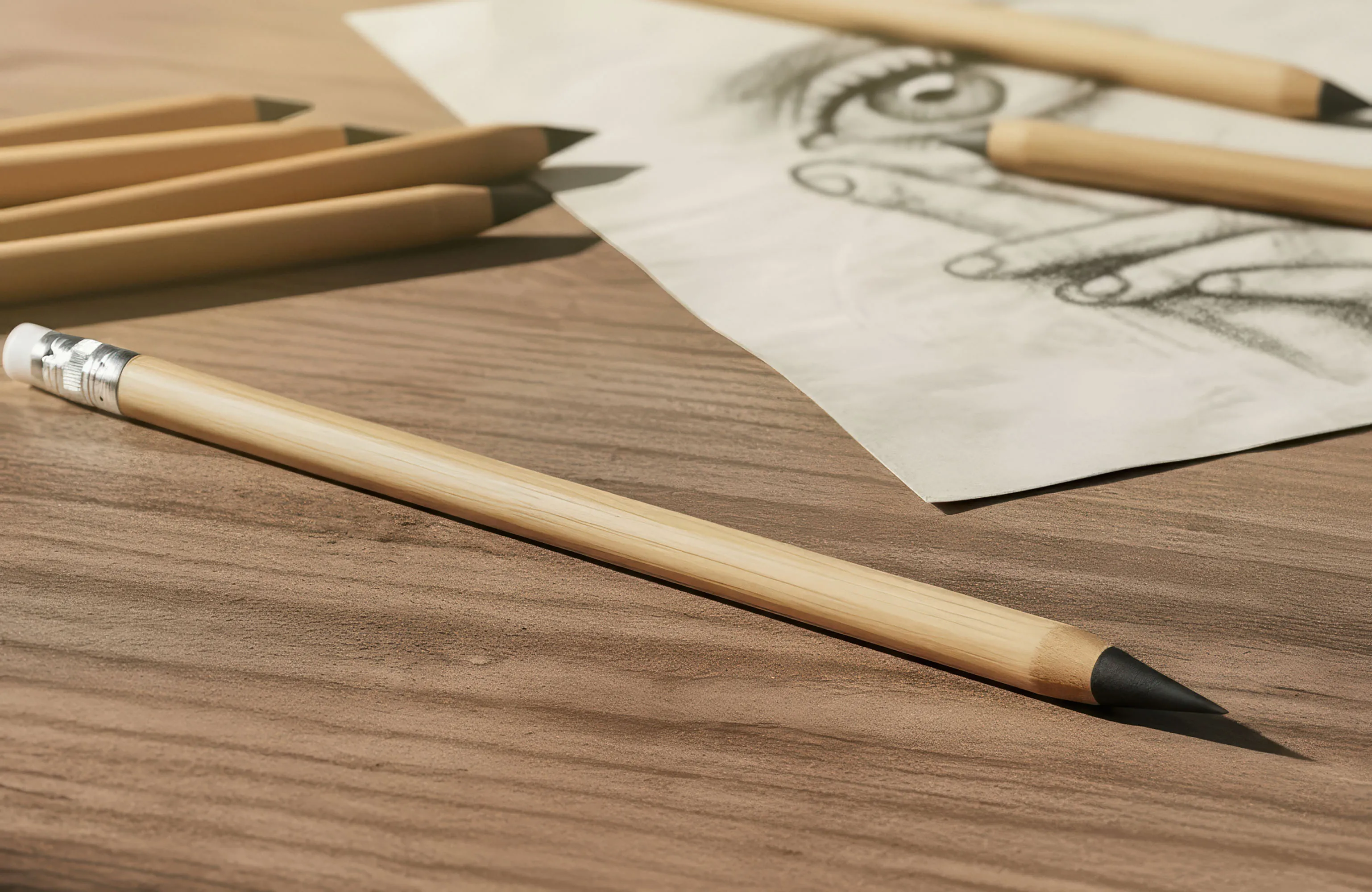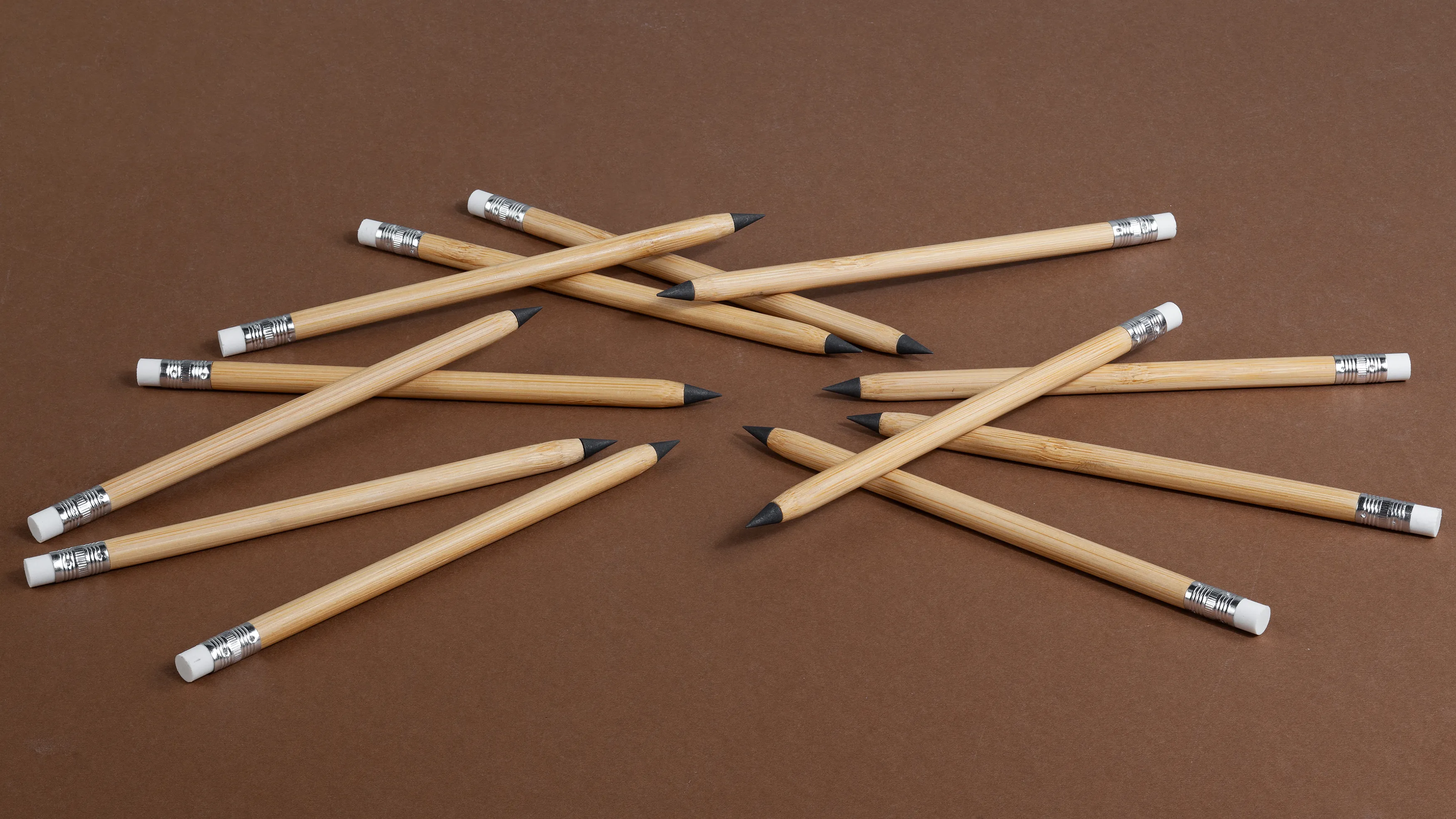 Экоответственный карандаш с защитным колпачком и ластиком. Пищущий элемент выполнен из сверхпрочного графита, длины письма которого хватит до 30 000 метров.