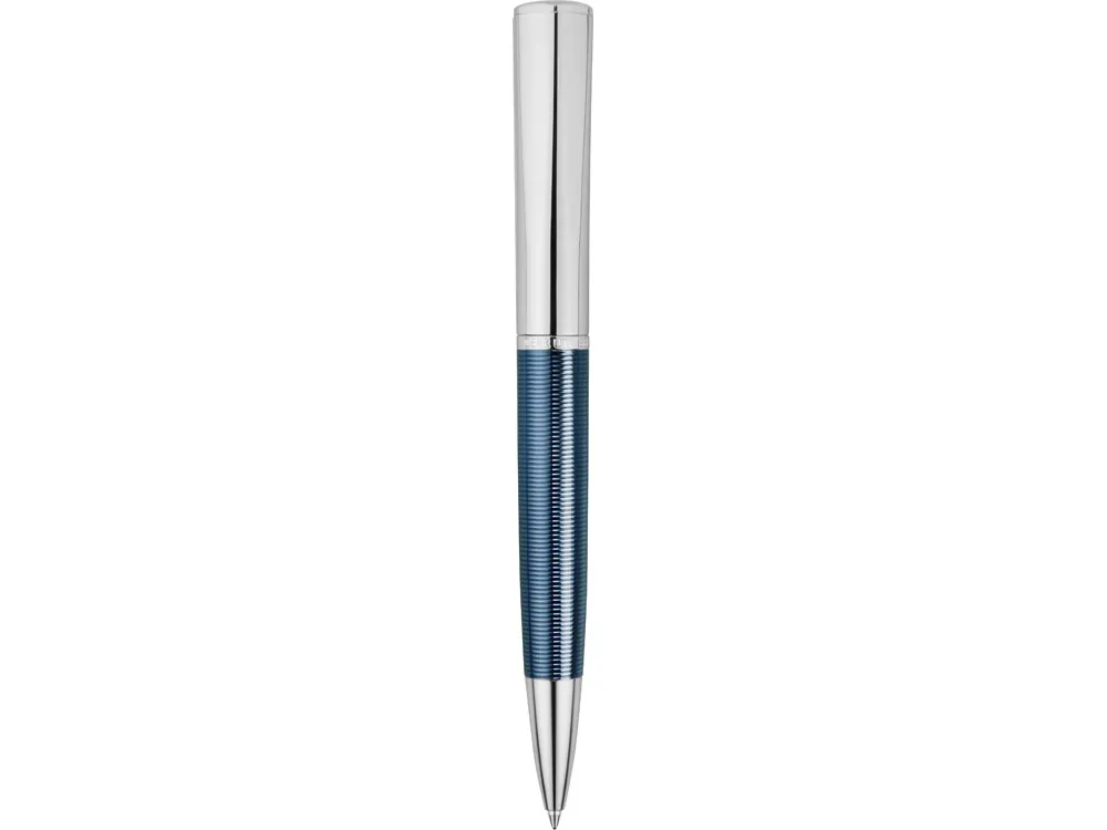 Утолщенная латунная ручка «Conquest Blue» будет прекрасно смотреться в крупных мужских руках. Стильный дизайн, основанный на сочетании синего и серебристого цветов, хорошо подходит к расцветке делового костюма.