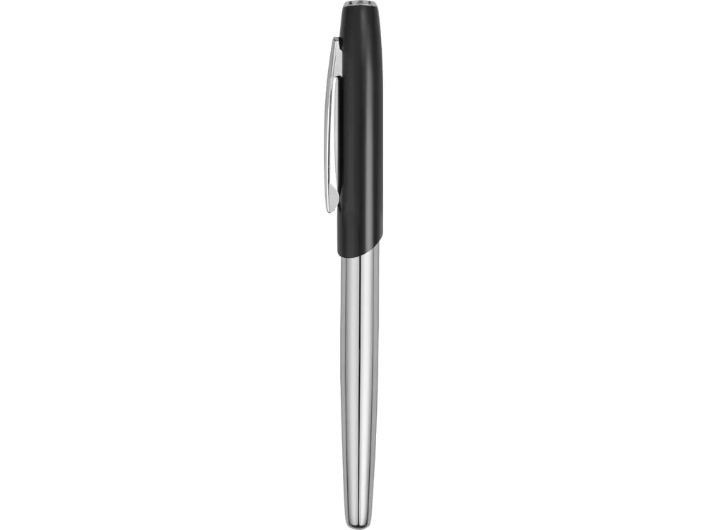 Изящная ручка-роллер с матовой верхней частью и блестящей хромированной нижней частью и соответствующими хромированными вставками.