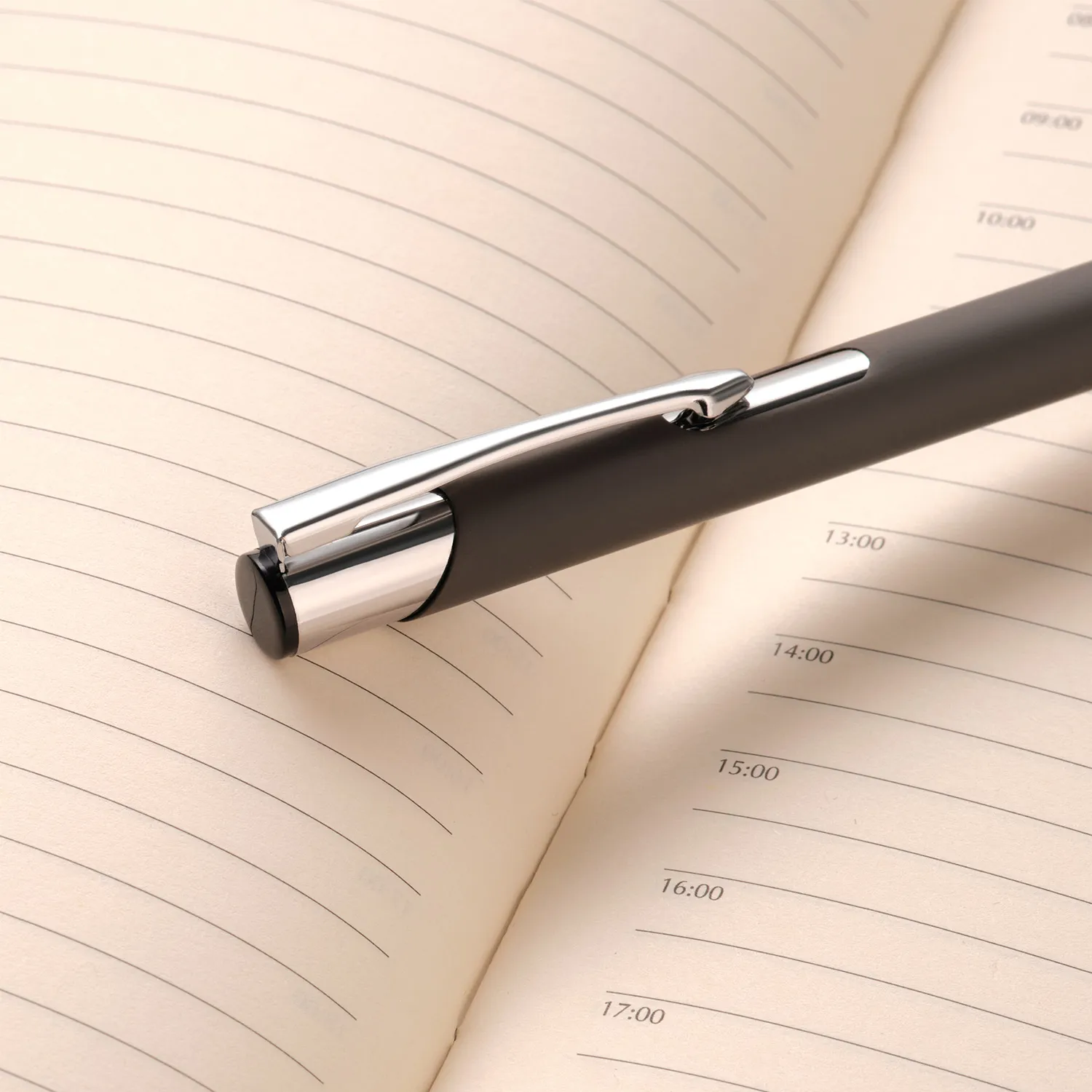 Классическая ручка в шелковистом покрытии soft touch станет прекрасным инструментом для письма. Хромированные детали – два декоративных кольца и функциональный надежный клип.