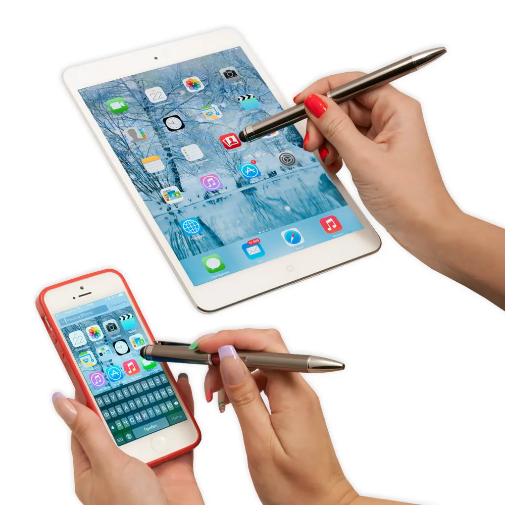 Силиконовый стилус на торце для работы с сенсорными экранами.