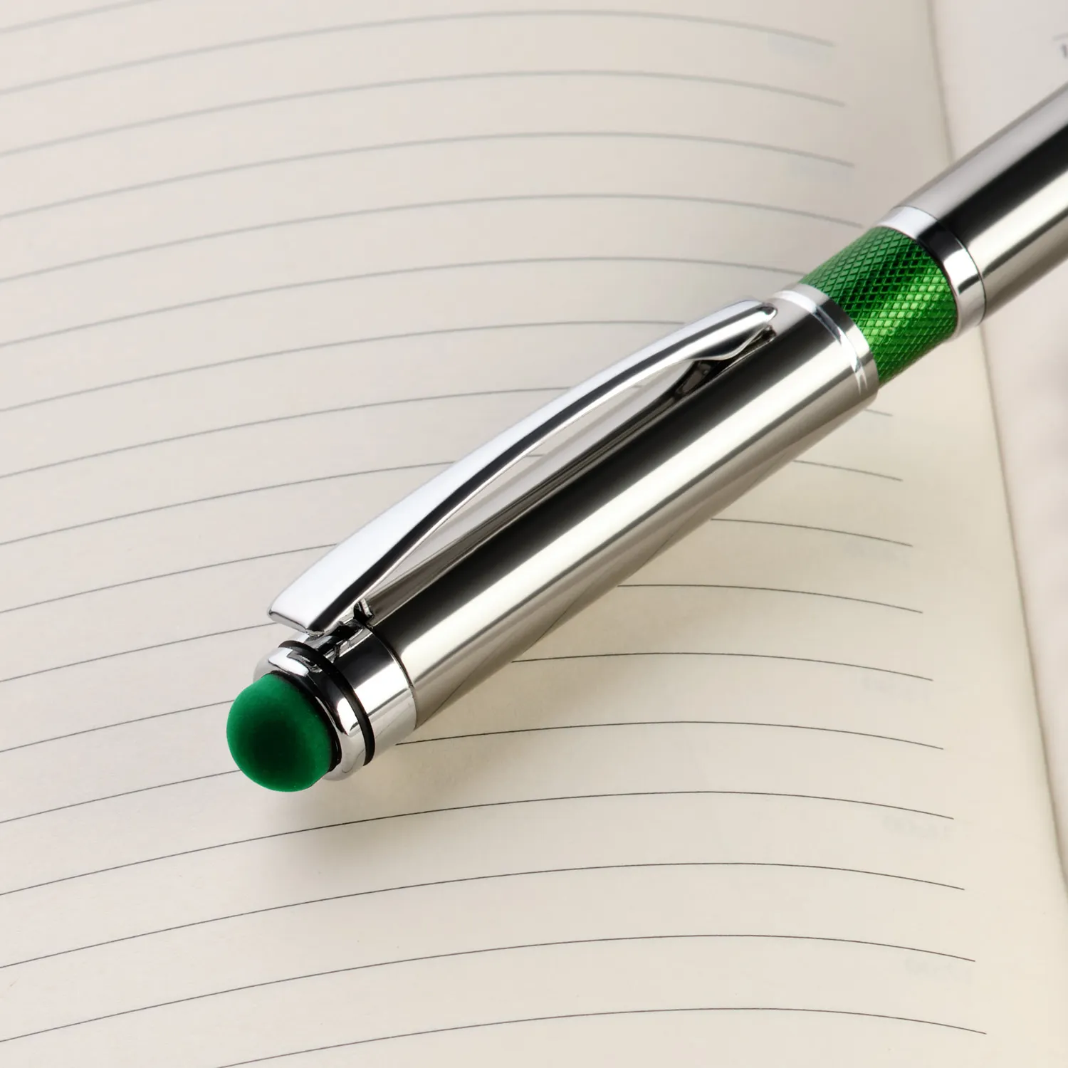 Силиконовый стилус на торце для работы с сенсорными экранами.