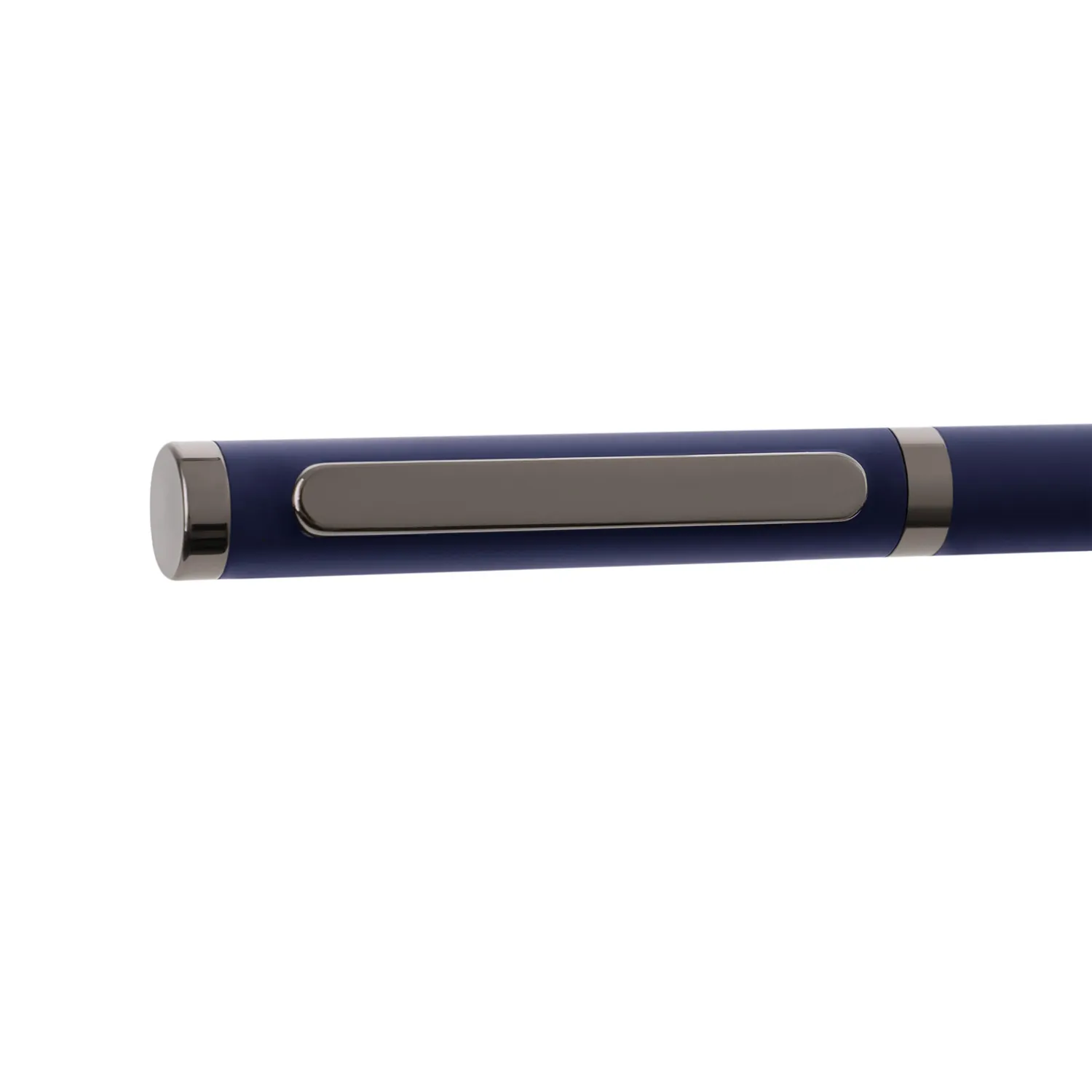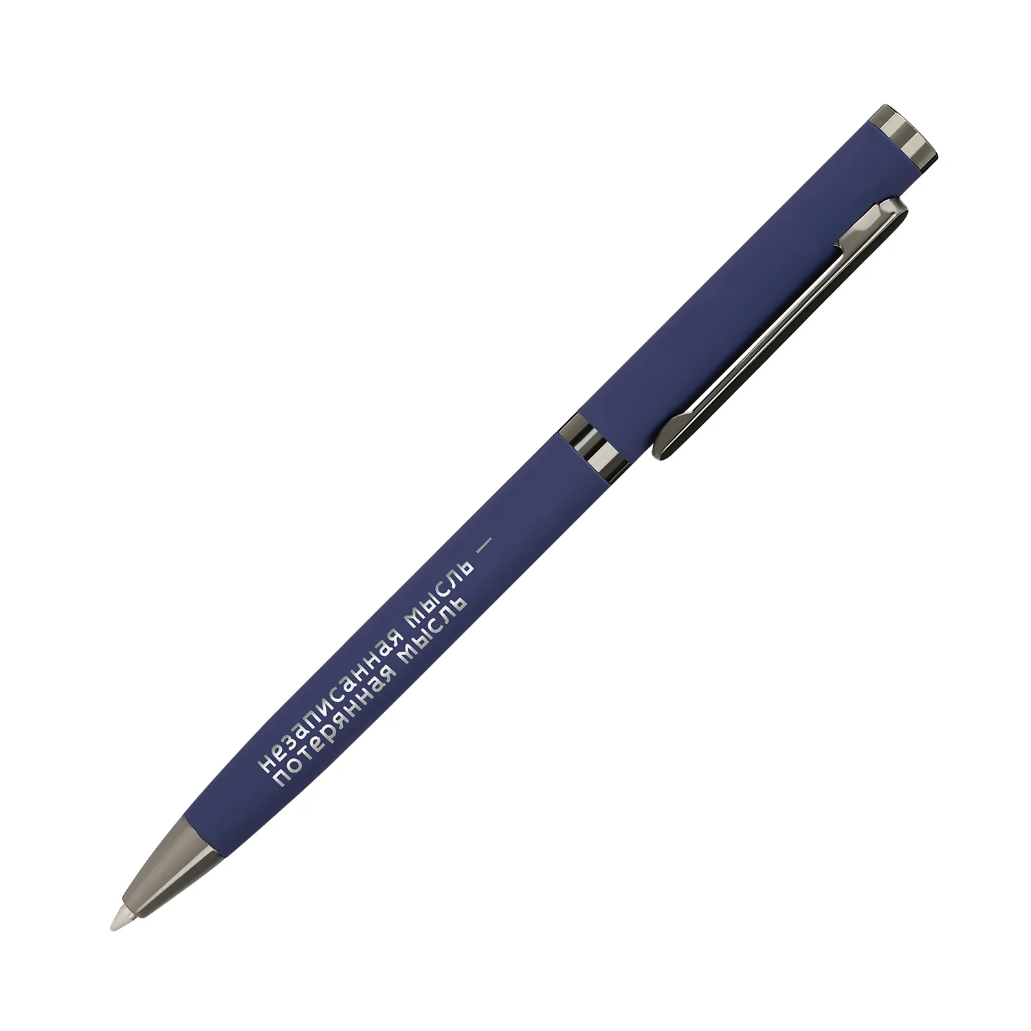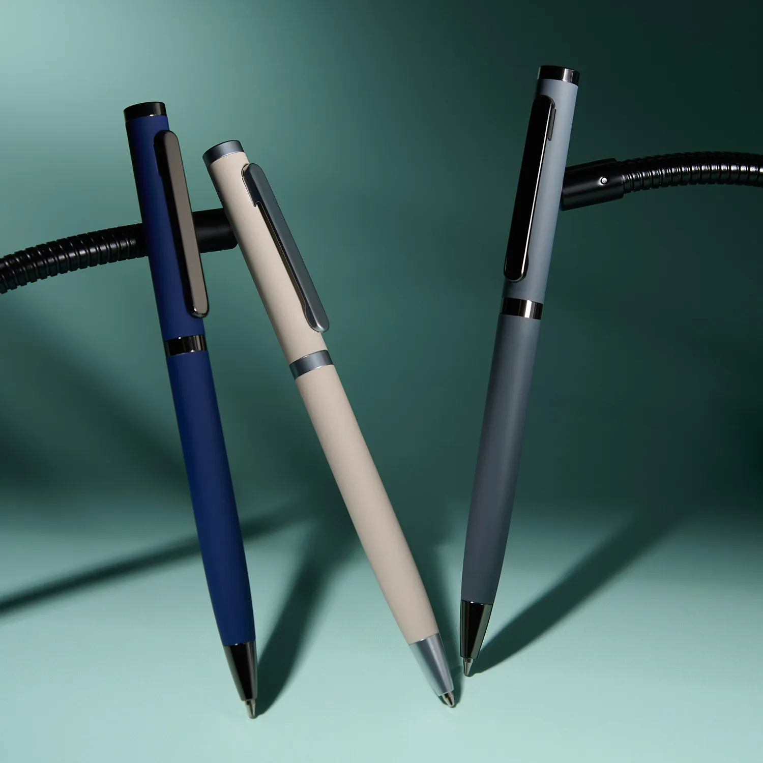 Классическое матовое Soft Touch покрытие корпуса обрамляется качественной хромированной отделкой, которая добавляет ручке изящности. Стержень легко выдвигается благодаря поворотному механизму, ручка не скользит в руке и комфортно ощущается при письме за счет покрытия. Плавно пишущие синие чернила Documental (Германия) обеспечивают качественное и мягкое письмо.