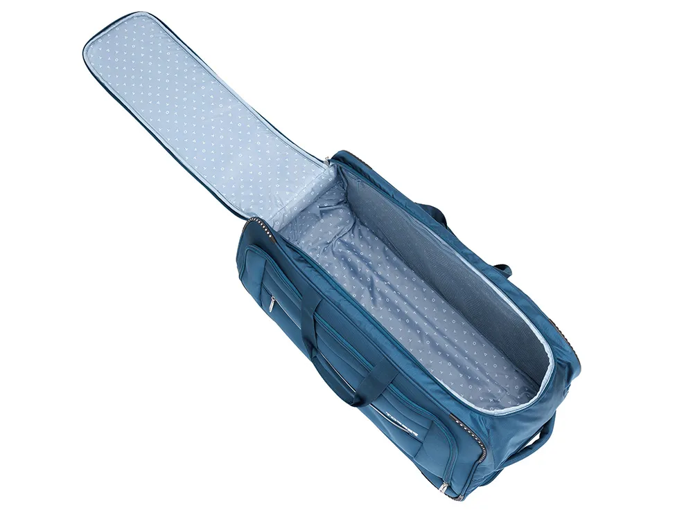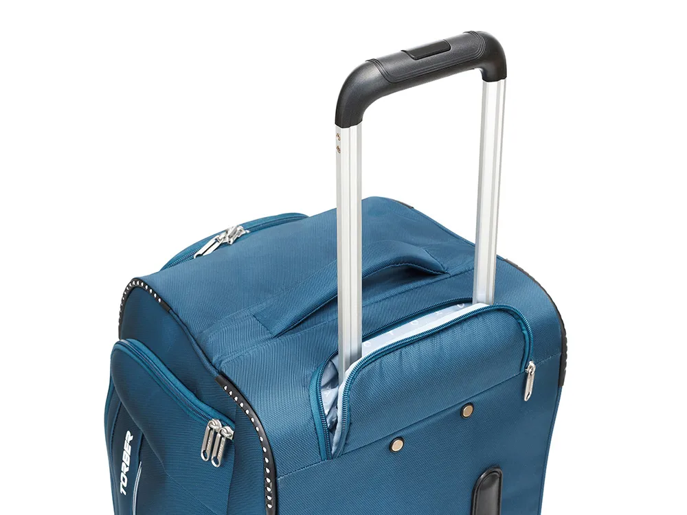 Сумка на колесах TORBER ВИВИ сочетает в себе элегантность и продуманную организацию пространства: Размеры: 69 х 30 х 32 см. Объём: 56 литров — достаточно места для личных вещей. Вес: всего 2,05 кг — лёгкая и манёвренная. Материал: полиэстер (жаккард) — долговечный и приятный на ощупь. Почему эта сумка покорит ваше сердце: - Удобная ручка для переноски — легко взять в руки при необходимости. - Телескопическая ручка — облегчает перемещение. - 3 внутренних кармана, включая сетчатый на молнии — порядок в мелочах гарантирован. - Два легко катящихся колеса — обеспечивают плавное движение по любой поверхности. - Два внешних кармана на молнии — быстрый доступ к самым нужным вещам (ключам, телефону, проездным билетам). - Удлинённые ножки на задней стороне — защищают сумку от потёртостей и грязи, продлевая срок её службы.