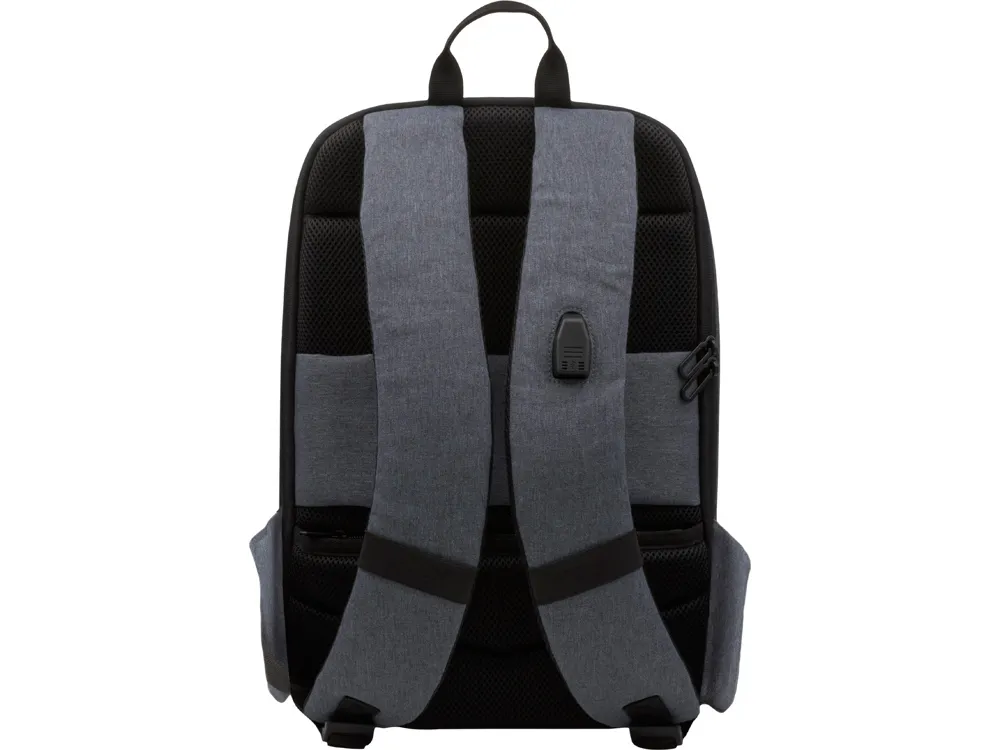 Надежный противокражный рюкзак из водостойкого материала с отделением для ноутбука 15'' оснащен молнией, смещённой к спине, что затрудняет несанкционированный доступ к содержимому рюкзака. - внутренний вместительный карман на молнии, - органайзер внутри, - карман для планшета, - светоотражающая полоса спереди для большей защиты в темное время суток, - сзади потайной карман на молнии, - неполное открытие благодаря специальным боковым клапанам, - резиновые вставки на лямках для хранения мелочей, - USB порт, - лямки регулируются по длине, - сетчатая дышащая спинка, - ремень для крепления на ручке чемодана Комплектуется 2мя съемными шильдами под нанесение вашего логотипа - металлическим и из эко кожи.
