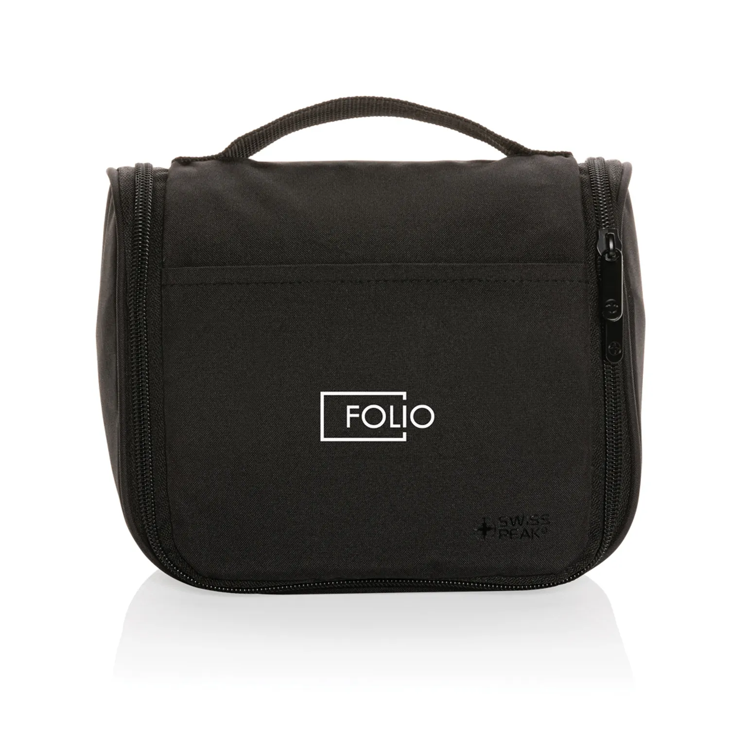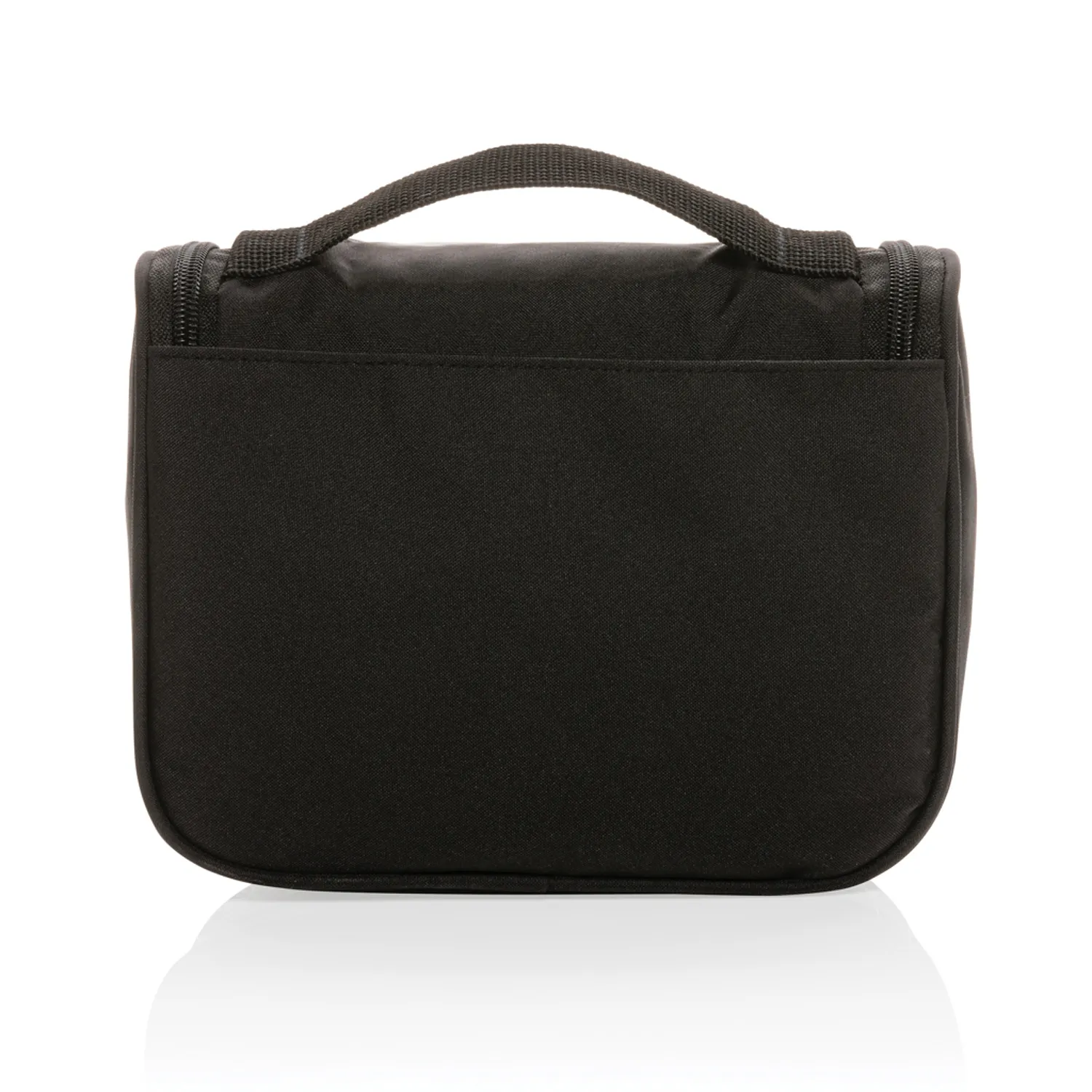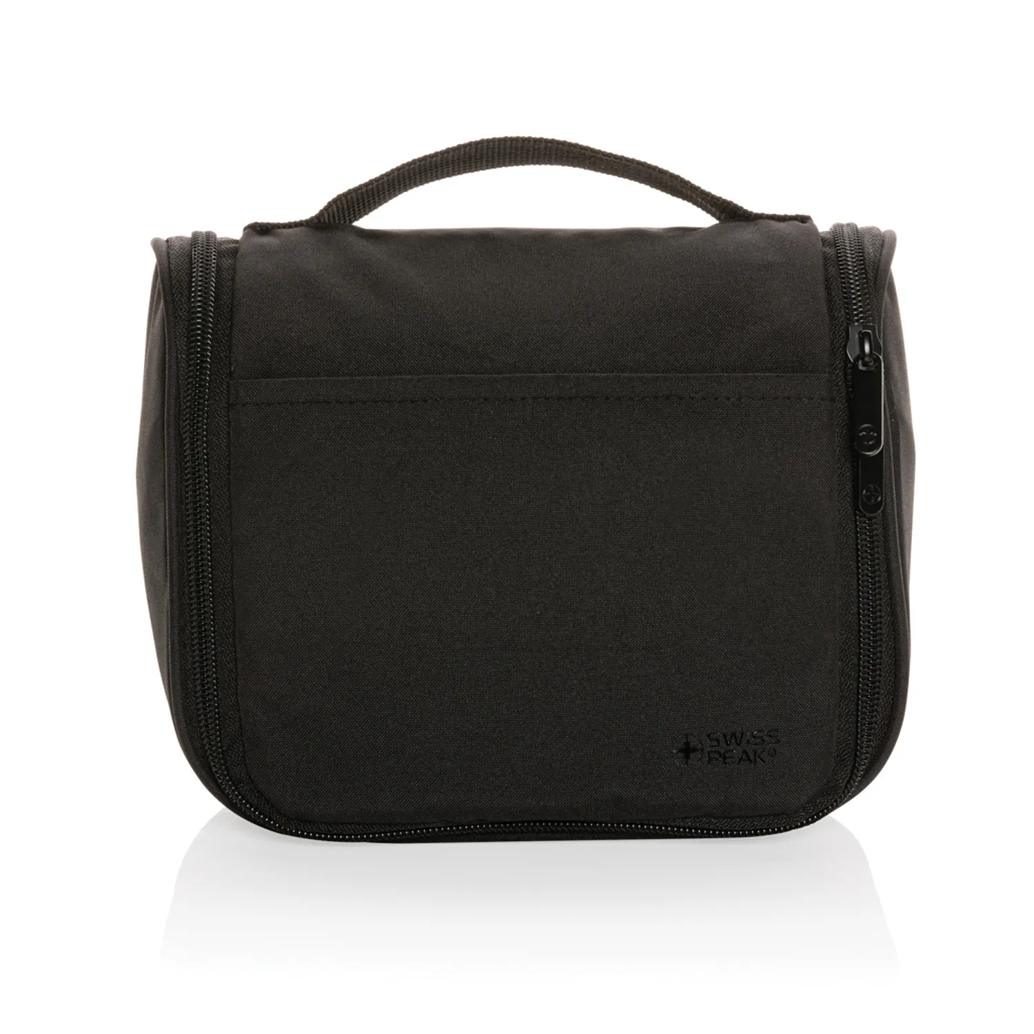 Дорожная косметичка Lohan — это стиль и комфорт в любой поездке. Большая и вместительная, она позволит взять с собой и косметику, и предметы гигиены. В косметичке есть одно общее отделение, четыре дополнительных, два открытых сетчатых кармана и один — на застежке-молнии. С внутренней стороны есть петля для крючка, который входит в комплект: так косметичку можно подвесить для большего удобства. Как и остальные продукты Swiss Peak, косметичка выполнена в глубоком черном цвете и смотрится очень стильно, строго и по-деловому. Она станет отличным подарком, который поможет поддерживать порядок во время поездок и мужчинам, и женщинам. Содержание вторичных материалов: 100%. Сертифицировано AWARE™. Наличие индикаторных частиц AWARE™ подтверждает, что мы действительно используем переработанные материалы. 2% с продажи каждой вещи, отмеченной сертификатом AWARE™, мы перечисляем в поддержку всемирной организации Water.org.