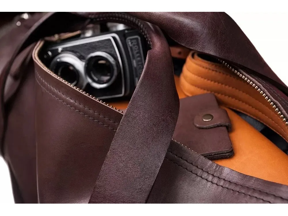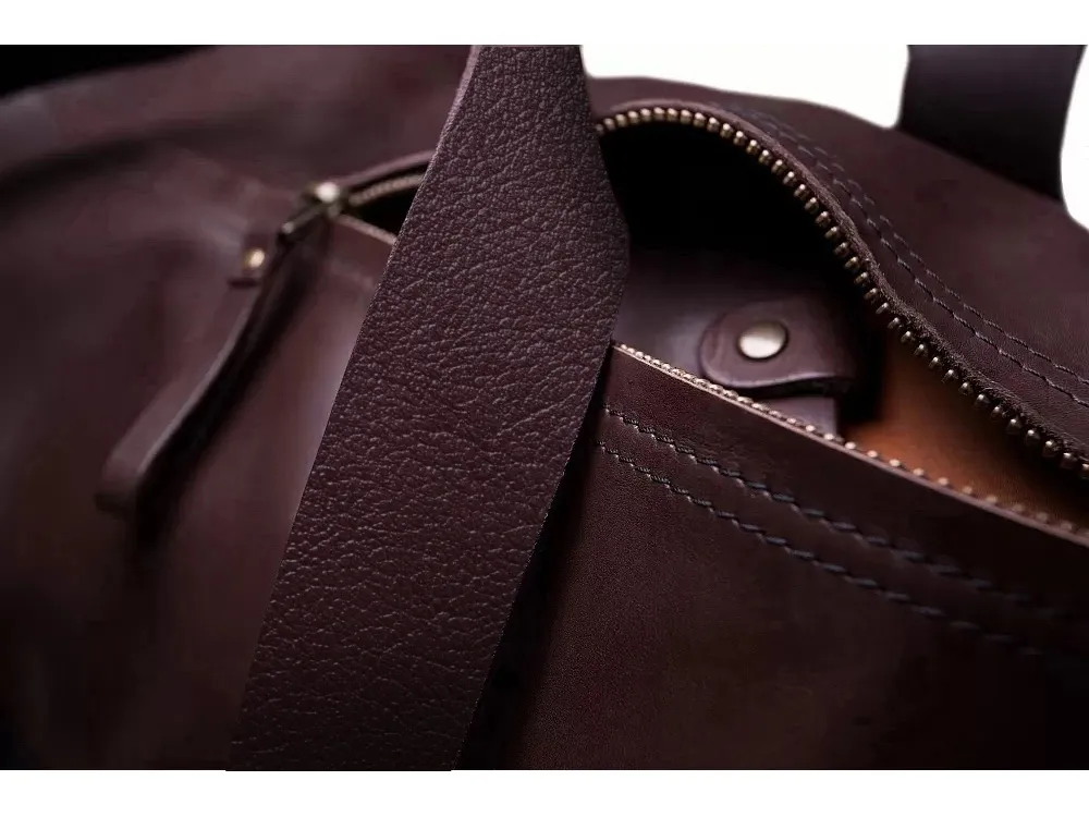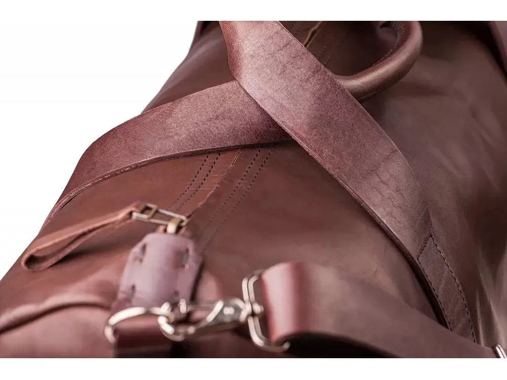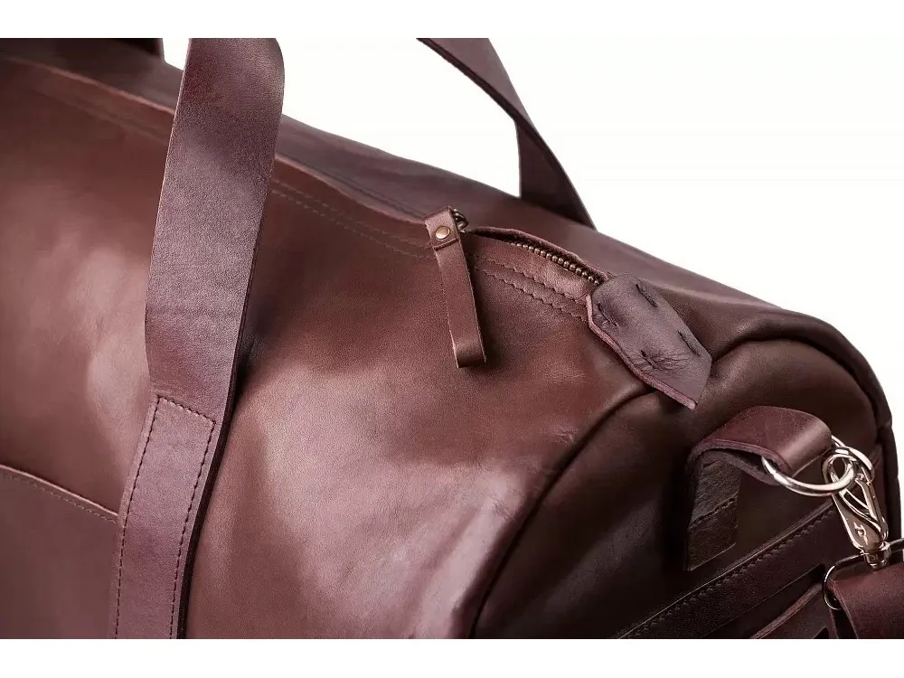 Настоящая дорожная сумка должна выполнять простые функции: быть вместительной, крепкой и красивой. Мы не стали изобретать велосипед – все необходимое уже придумано до нас. Сумка создана по мотивам военных вещмешков, функциональных и прочных. Кожа, из которой сделана сумка, очень качественно выделана.