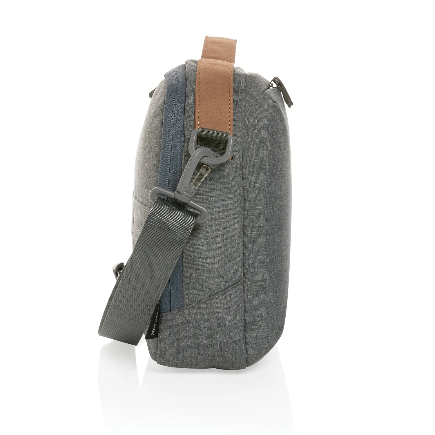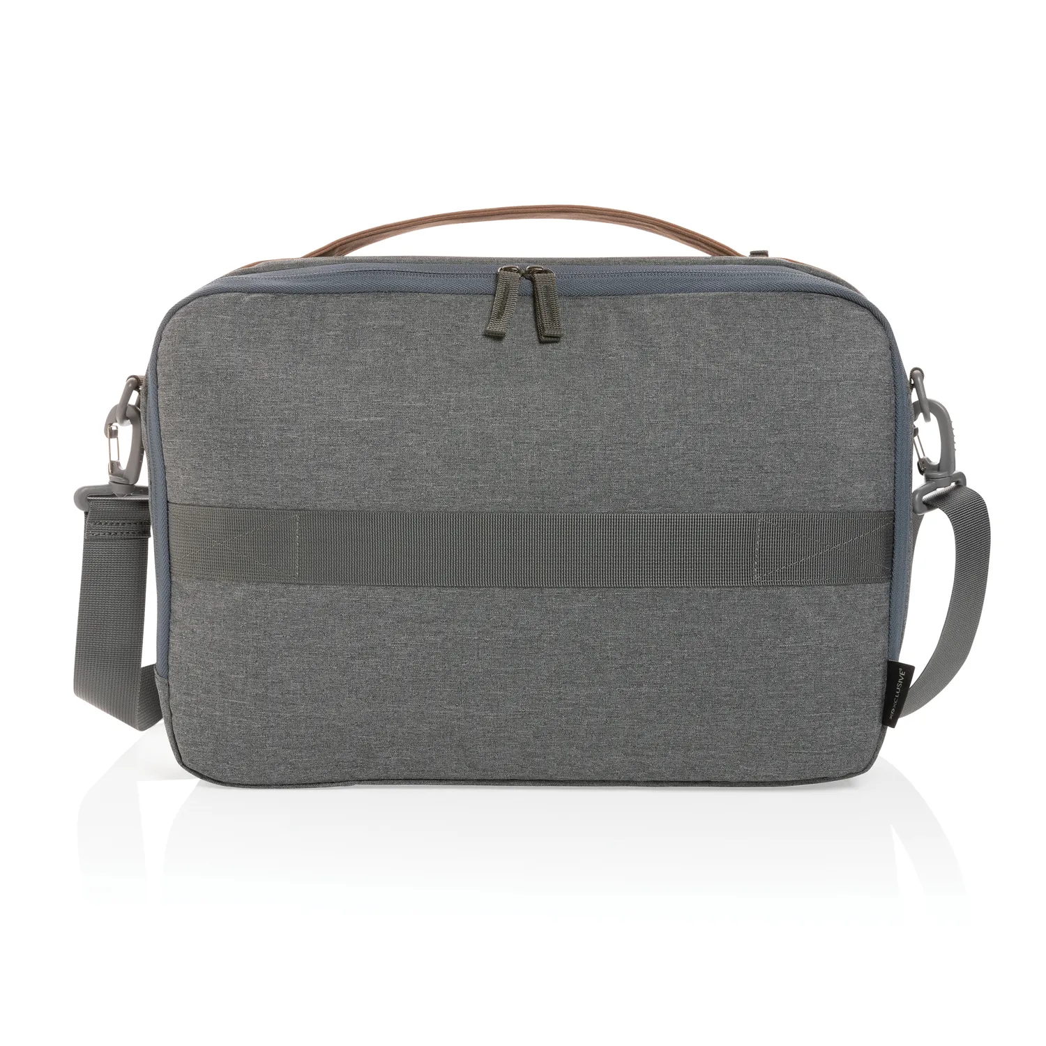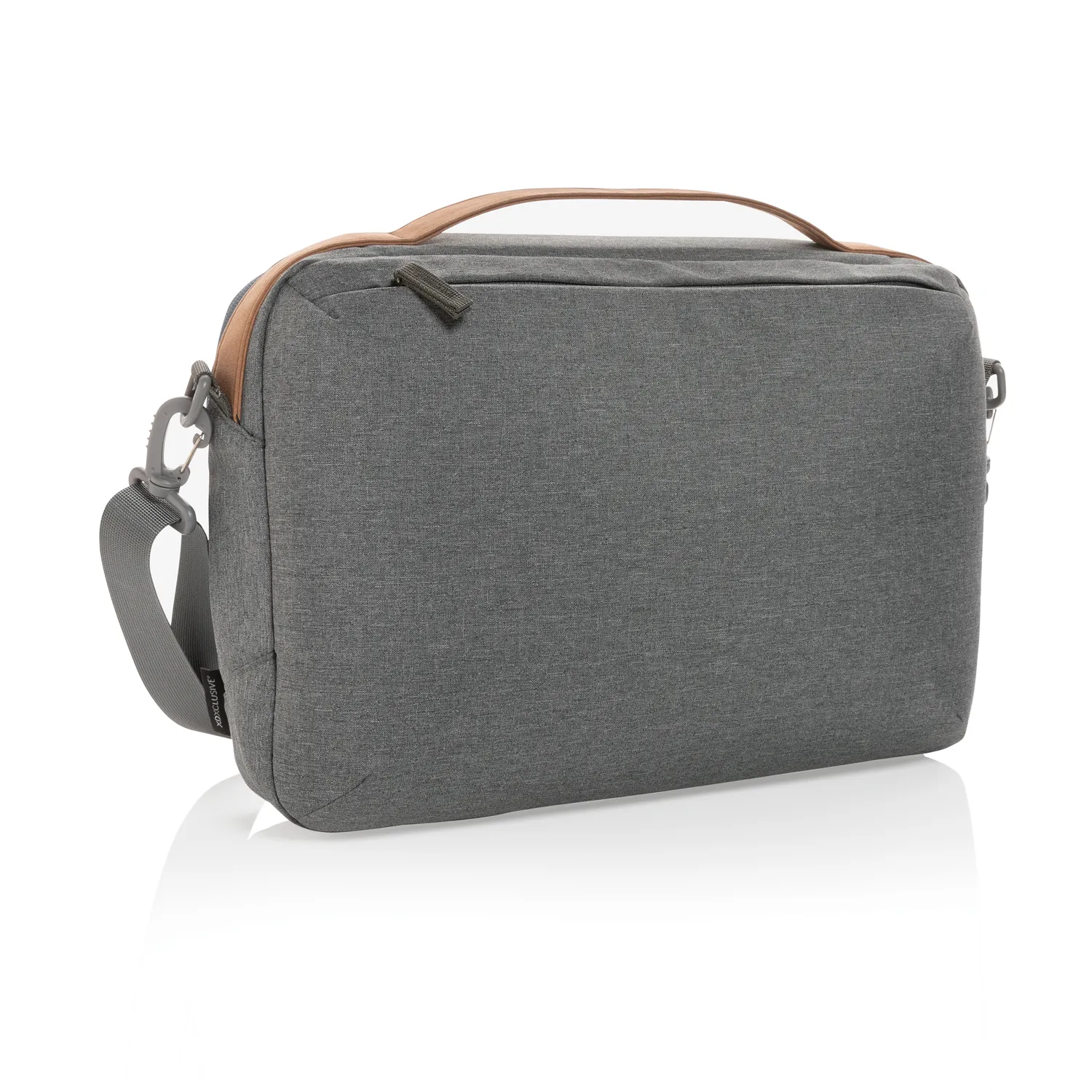Стильный аксессуар с минималистичным дизайном прекрасно подойдет для ежедневного использования. В основном отделении есть отсек для ноутбука диагональю 15.6" и два сетчатых кармана. Спереди расположен дополнительный карман на молнии. Надежная ручка из полиуретана. И ткань сумки, и подкладка выполнены из переработанного полиэстера с добавлением индикатора AWARE™. Наличие индикатора гарантирует, что в изделии использованы настоящие переработанные материалы. При производстве каждой сумки мы сэкономили 5,2 л воды и повторно использовали 8,75 пластиковых бутылок объемом 0,5 л. 2% от продаж коллекции Impact будет перечислено в поддержку всемирной благотворительной организации Water.org.