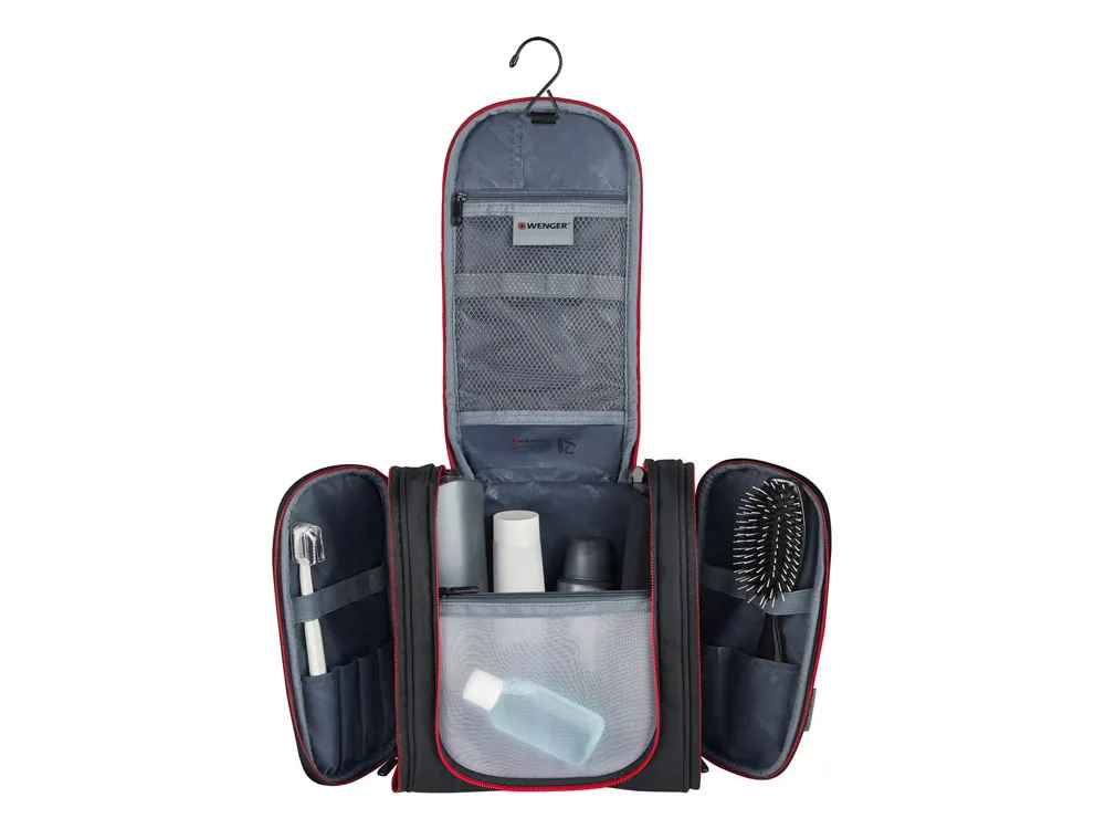 Несессер Wenger "Hanging Toiletry Kit" - комфорт и удобство в каждой детали. Нессесер содержит эластичные петли для крепления бутылочек для мытья тела/волос или лосьона, а также карман на молнии с подкладкой для предметов по уходу за кожей. Водостойкий, с подвесным крючком и антибактериальной подкладкой, Wenger "Hanging Toiletry Kit"- отличное решение для поездок и ежедневного использования. Основные преимущества: • Антибактериальная подкладка для максимальной гигиены • Подвесной крючок • Прочный водостойкий полиэстер для легкого и эффективного хранения в ванной комнате • Эластичные петли для бутылочек с лосьоном или средством для мытья • Карман на молнии для косметических средств и туалетных принадлежностей Размер несессера: 10 см x 24 см x 23 см Вес несессера: 190 г Материал: 100% полиэстер