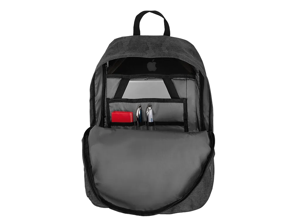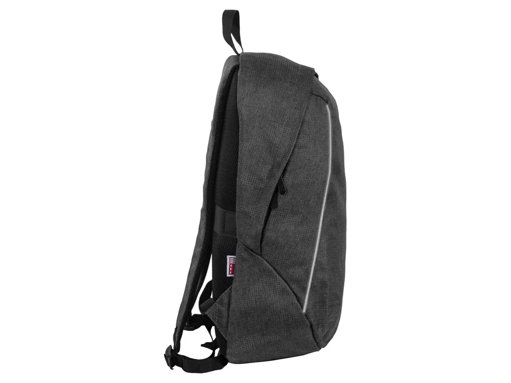 Материал, из которого сделан этот рюкзак, имеет светоотражающее камуфляжное нанесение. Спереди расположены 2 светоотражающие полосы. Все это обеспечивает дополнительную безопасность в темное время суток. - 2 уплотненных внутренних кармана для ноутбука и планшета с креплением на эластичных ремнях - органайзер - карман внутри для мелочей - дышащая сетчатая спинка - ремень для крепления на чемодан - регулируемые по длине лямки