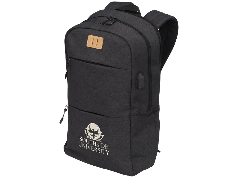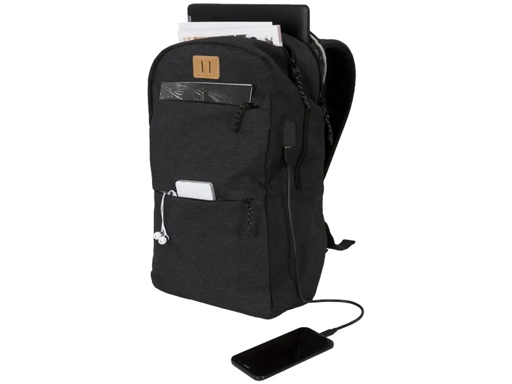 Рюкзак Cason для ноутбука 15". Оснащен открытым главным отделением с карманом для ноутбука 15", двумя передними отделениями на молнии, съемными бегунками застежки молнии и печатной строкой внутри. Поставляется с USB-портом и кабелем для удобной зарядки во время движения. Polycanvas 600D.