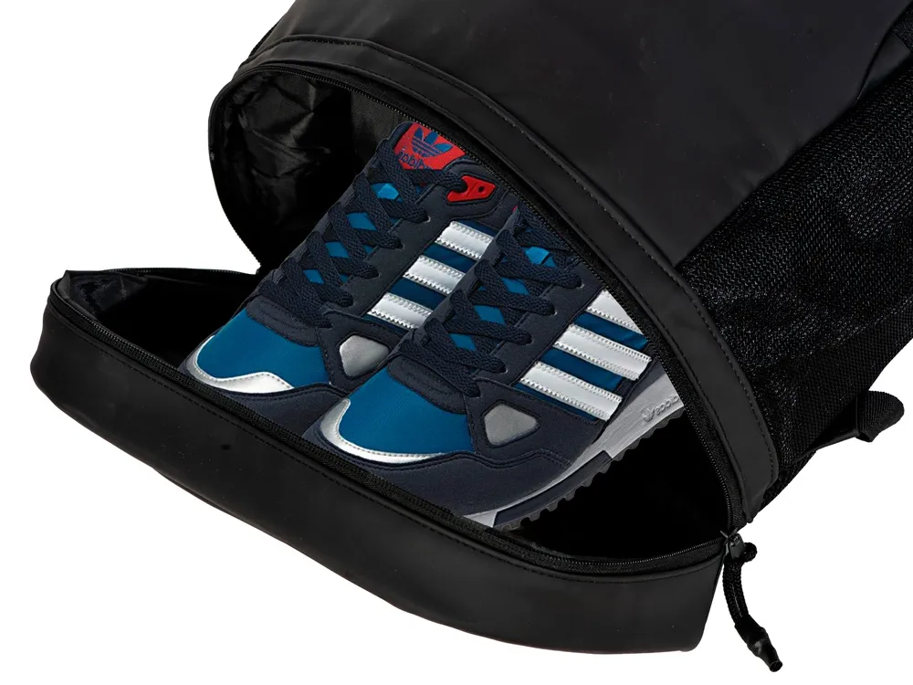Большой вместительный рюкзак удобно использовать для походов на тренировки и поездок. - плотный непромокаемый материал - спереди и внутри карманы на молнии - 2 боковых сетчатых кармана - внизу отделение для обуви на молнии - уплотненная сетчатая спинка - лямки регулируются по длине и фиксируются на груди для большего удобства - в комплекте сменные бегунки красного, зеленого, оранжевого цвета