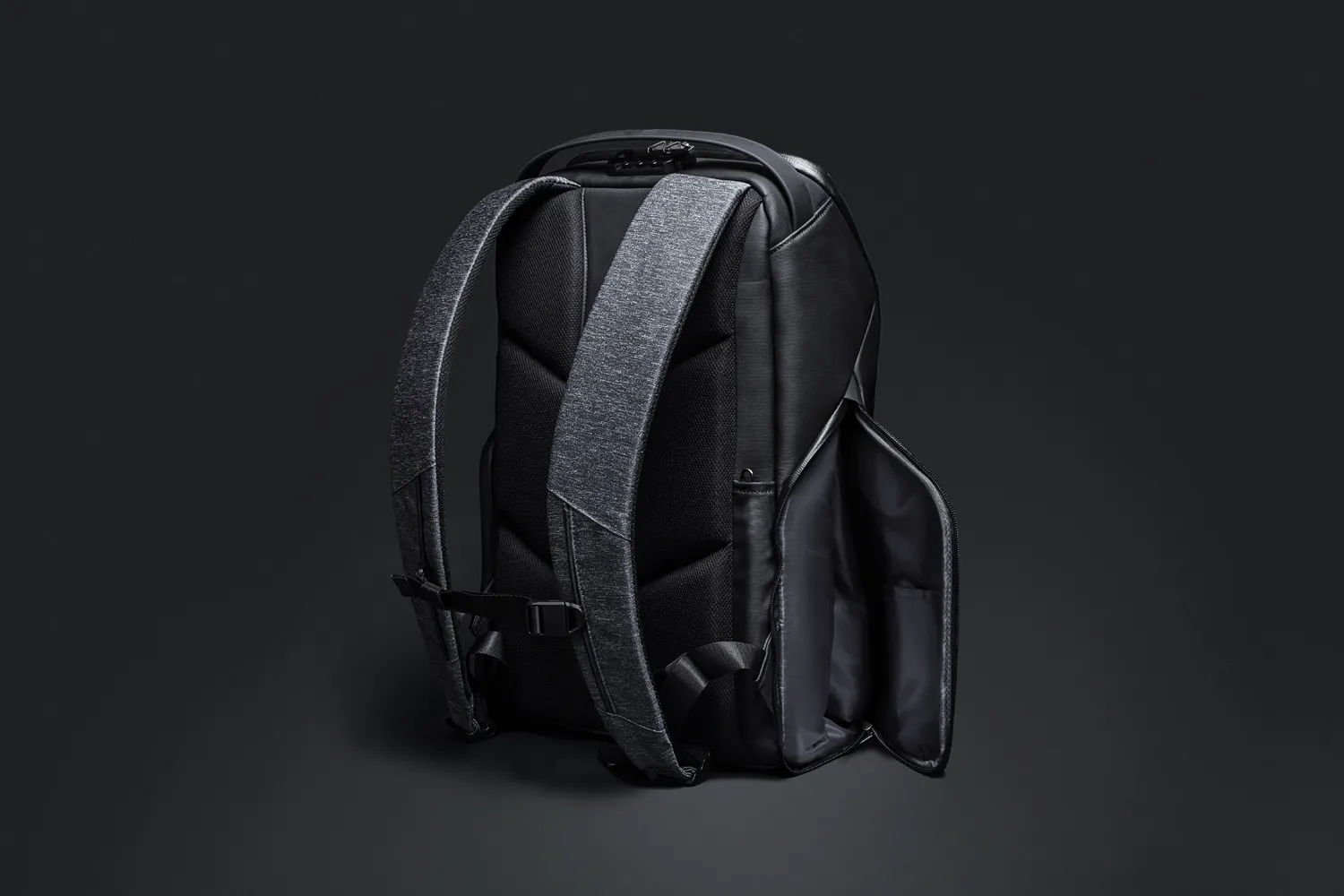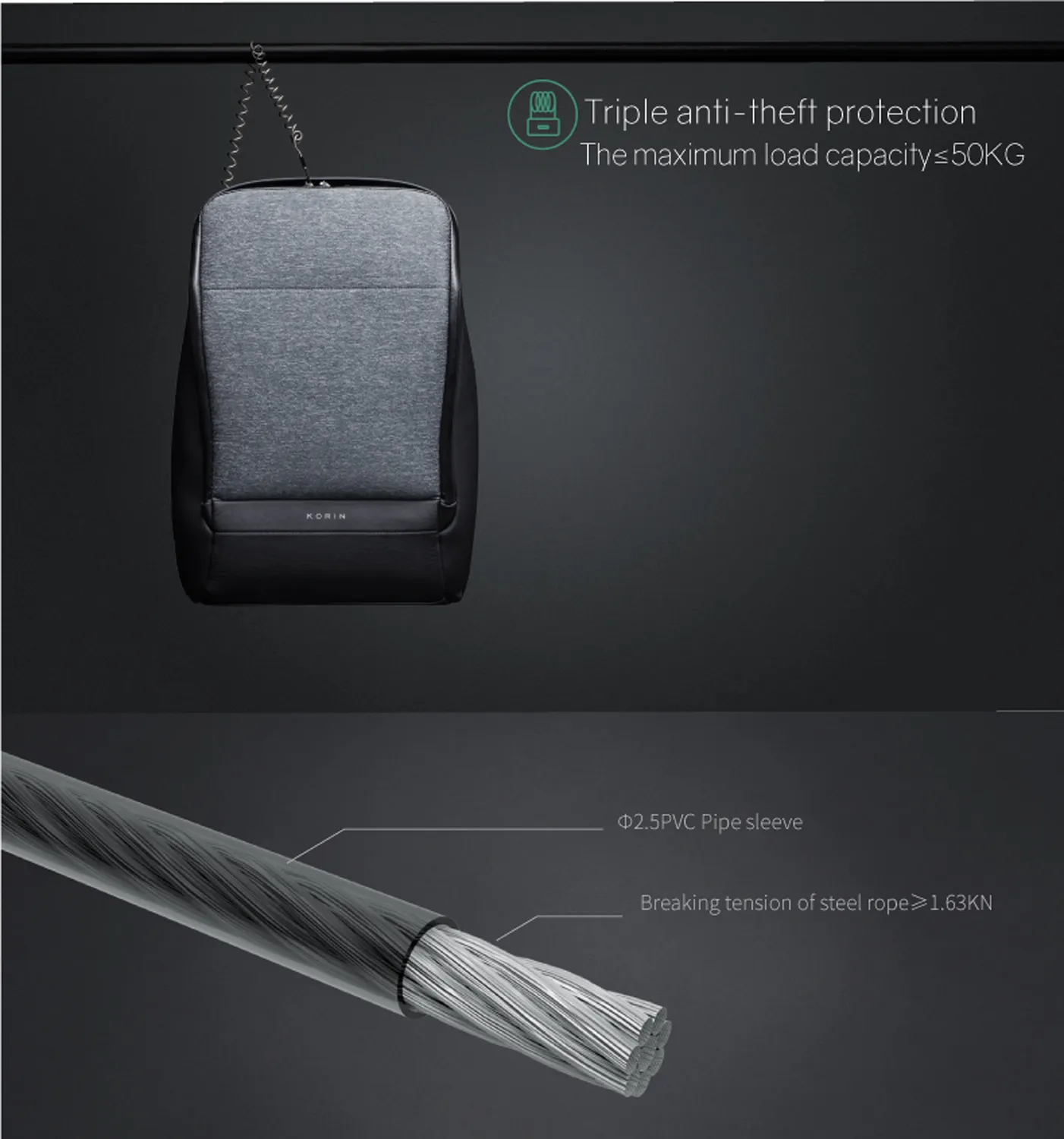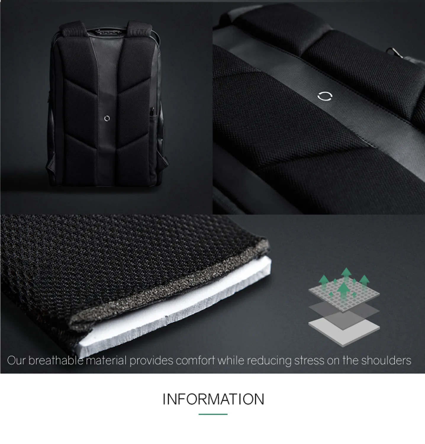 Вместительный водозащищенный рюкзак FlexPack Pro, обладатель премий iF Design Award 2019, Golden Pin Design Award, China Outstanding Industrial Design (CEID) Award, Governor Cup Industrial Design Excellence Award. Сделан из комбинации высокопрочных устойчивого к порезам и трению водоотталкивающих материалов: полиэстера и ткани многослойного плетения разных типов (нейлон, полиэстер и стекловолокно) черного и темно-серого цветов. Не требует специального ухода. Конструкция рюкзака достаточно жесткая, не деформируется. Внутри рюкзака есть специальный карман, в который можно поместить powerbank, т к в него приходит USB-кабель (600 мм, 0,5-0,7 А, 5В), соединенный с портом на внешней стороне рюкзака для легкого подключения к смартфону. Это оригинальная запатентованная система зарядки K EasyCharging 1.0 с помощью USB-порта, расположенного в борту рюкзака, и кабеля, идущего к powerbank, что делает мобильную зарядку более удобной. Детально продуманная организация отделений позволяет грамотно распределить вес. Самые тяжелые предметы располагаются ближе к спине. Ноутбук надежно фиксируется и не перемещается при ходьбе. Внутри рюкзака есть 5 дополнительных карманов на молниях. Специальная анатомическая конструкция вентилируемых мягких спинки и лямок и дополнительная поперечная лямка на магнитной застежке снижает нагрузку на плечи и спину, вес рюкзака воспринимается на 20-25% легче, чем при использовании стандартных моделей рюкзаков. • Размер рюкзака 47х34х18 см • Объем 18 л • Вес 1330 гр Ключевые моменты: • Водонепроницаемая молния с фиксацией кодового замка TSA007 с функцией таможенного досмотра • Карман для powerbank с USB-кабелем (600 мм, 0,5-0,7 А, 5В) • Рюкзак оснащен стальным тросом, которым можно обхватить неподвижный предмет и затем зафиксировать в кодовом замке. Внутреннее наполнение: • Отделение для ноутбука диагональю до 15,6” • 5 дополнительных карманов на молниях 3 кармана 15-17х21-26 см 2 боковых кармана с отделениями для телефона и мелочей - 11,5х20 см Внешняя сторона: • 2 easy access кармана на водонепроницаемых молниях - 22х12 см • Петля для очков или наушников на лямке • Удобная ручка из высококачественной прочной резины