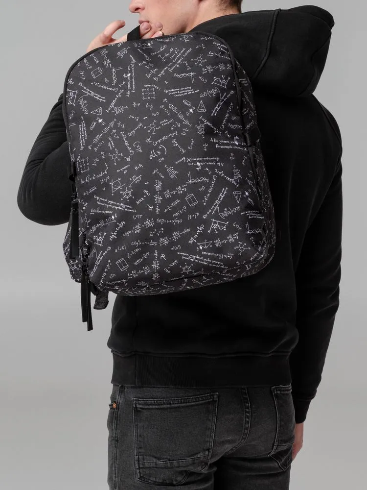 Рюкзак с девизом: «Единственное, что могу считать в математике, — считаю, что это не мое». Судя по размеру, вмещает энное количество вещей. Подтверждение этому можно находить снова и снова.