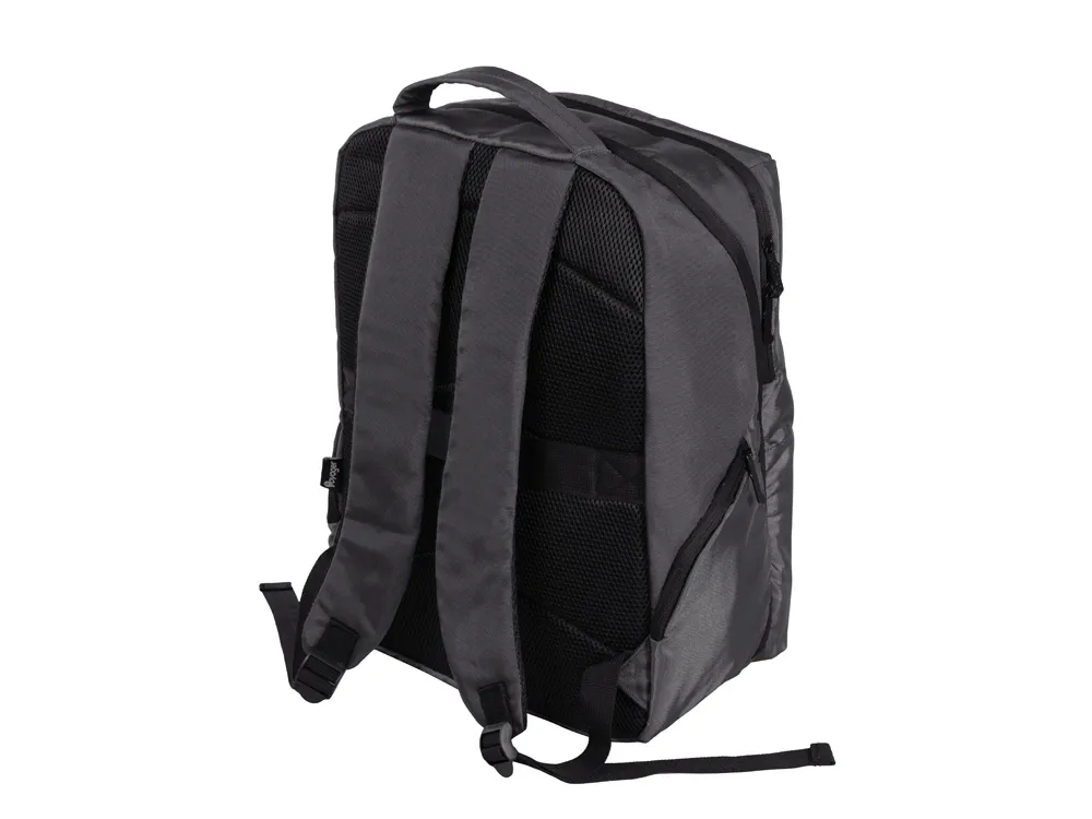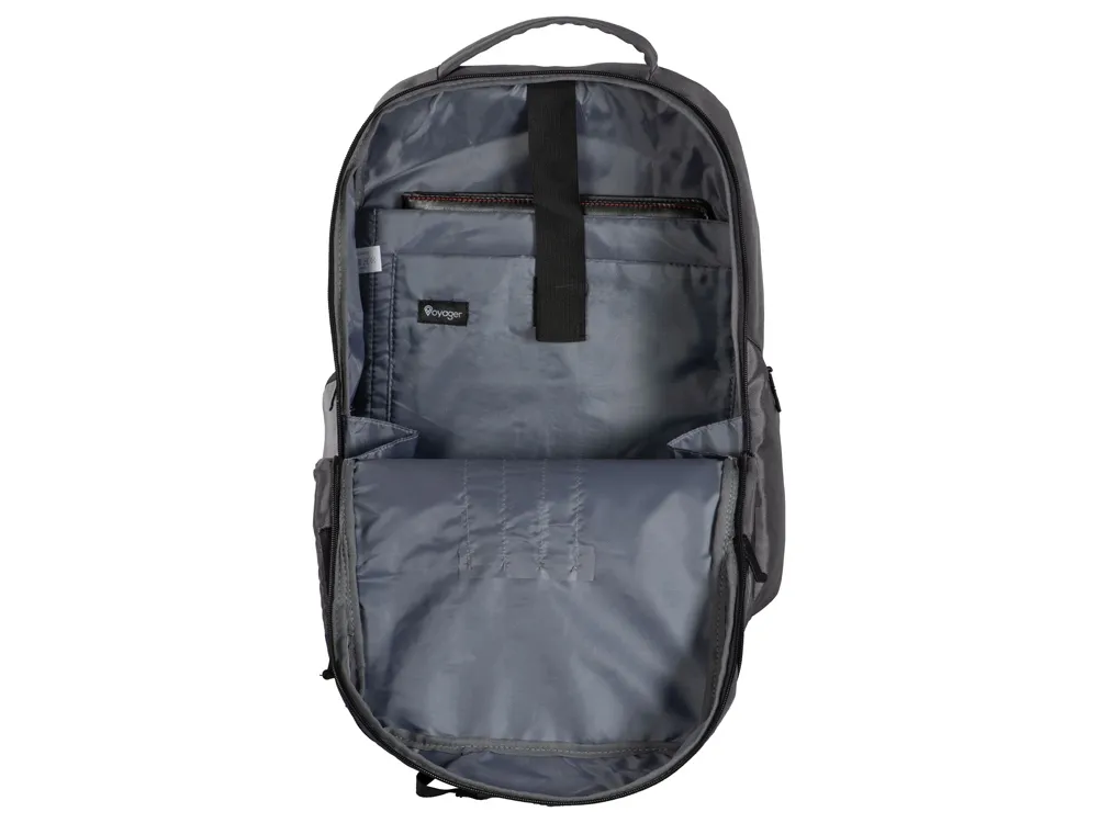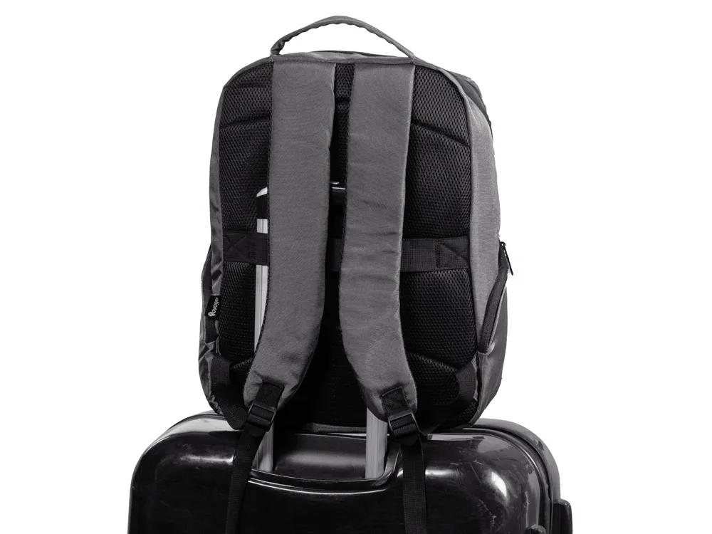 Вместительный городской рюкзак для деловых людей, состоящий из 2х отделений: - 2 кармана для ноутбука и планшета - органайзер - карабин для ключей - 2 боковых кармана, закрывающиеся на молнии - светоотражающий элемент спереди для большей безопасности в темное время суток - ремень для крепления на ручку чемодана - регулирующиеся по длине лямки - сетчатая спинка