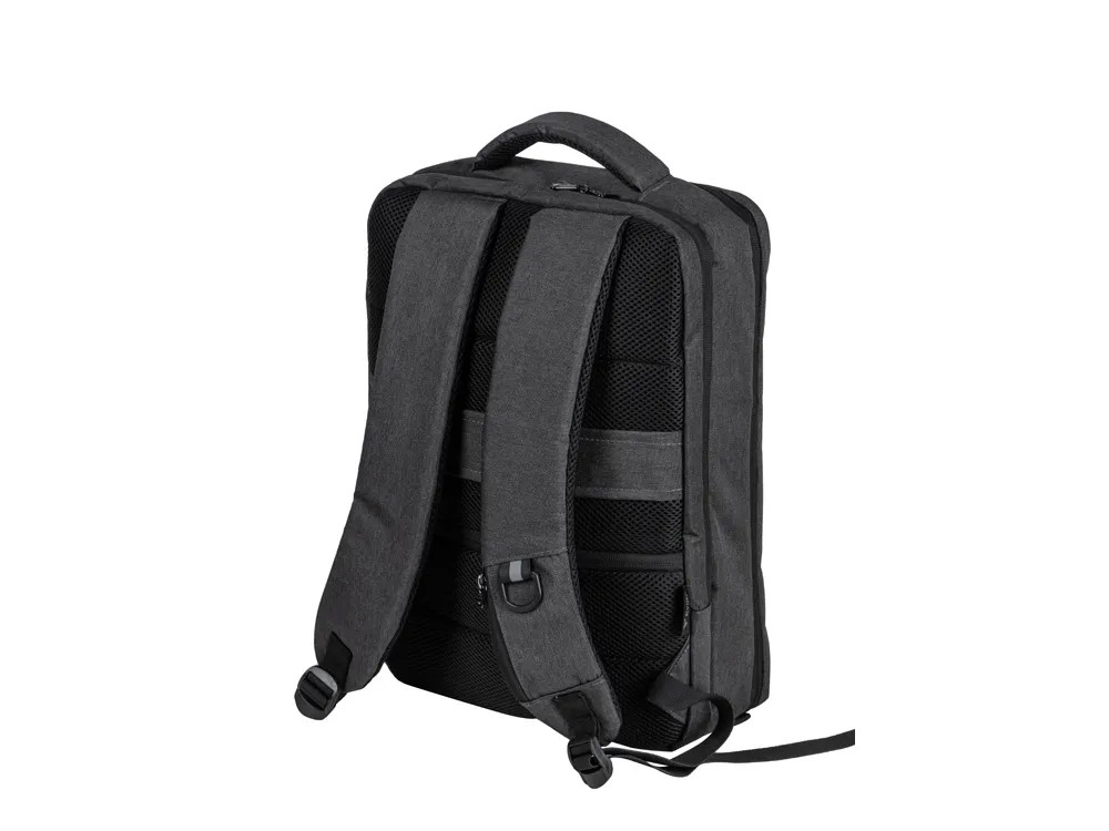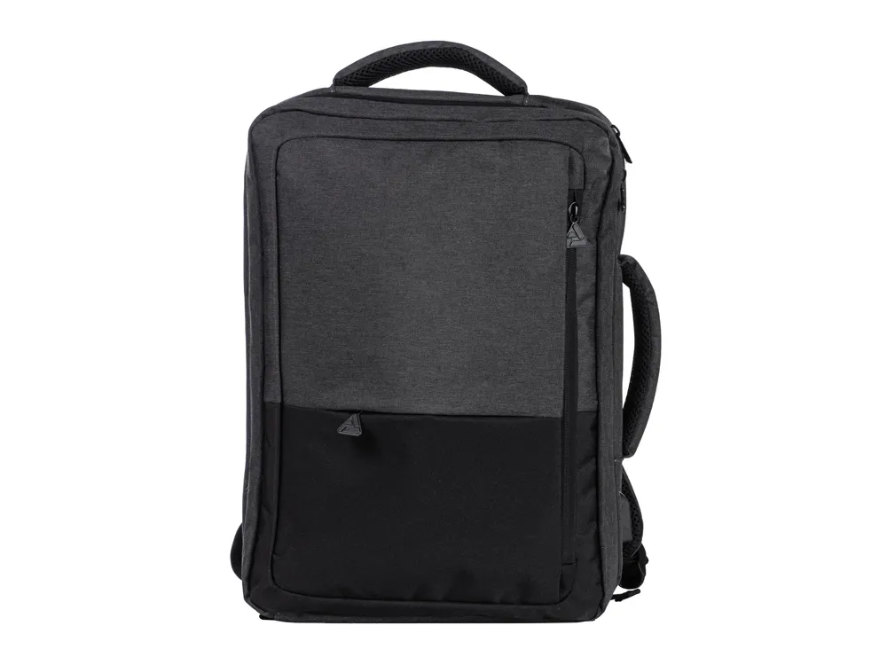 Уникальный и удобный рюкзак-трансформер может легко превратиться в элегантную сумку для деловых поездок благодаря двум вариантам использования. - большое отделение с эластичными фиксирующими ремнями для одежды и карабином для ключей - отделение для ноутбука с органайзером - спереди 2 кармана на молниях - USB выход - на спинке потайной карман на молнии - регулирующиеся по длине лямки - светоотражающий элемент и карман на молнии для карточек и других ценных мелочей на лямке - ремень для крепления на чемодан - дышащая спинка