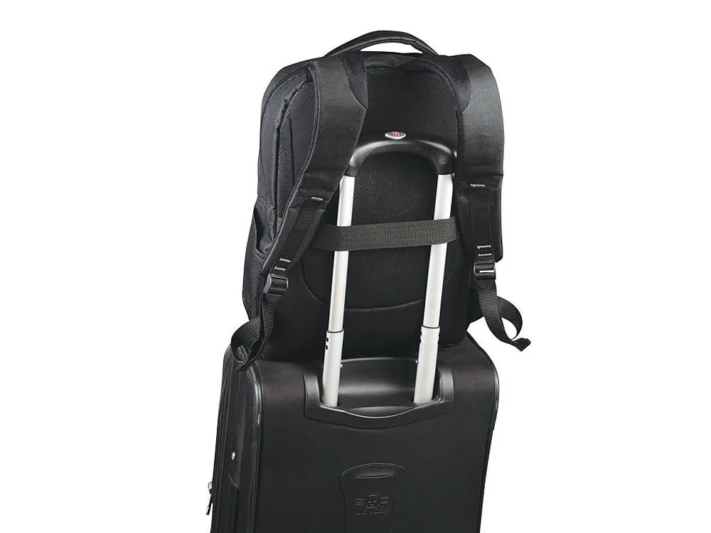 Рюкзак Vault для ноутбука 15.6" с защитой RFID. Изящный, современный рюкзак для ноутбука 15,6 " с большим передним карманом на молнии с карабином для ключей, и скрытым карманом с защитой RFID, чтобы защитить ваши карточки и паспорт от кражи личных данных. Большое основное отделение вмещает ноутбук 15,6" и специальный карман для IPad или планшета. Плотная спинка. Передняя вертикальная молния разработана, чтобы дать вам быстрый доступ к переднему карману. 2 дополнительных боковых кармана для большего места, регулируемые, мягкие ремни рюкзака позволят прикрепить к ним дополнительные аксессуары. Ручка вверху и стропа для крепления к чемодану. 600D полиэстер с акцентами из ПУ винила.