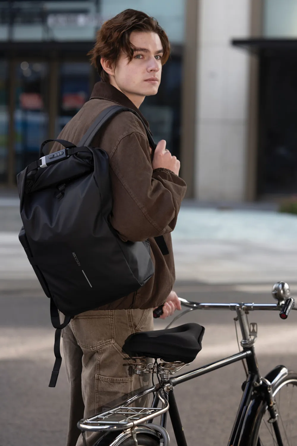 Рюкзак Urban нидерландского бренда XD Design — идеальный спутник в поездках, обеспечивающий безопасность и удобство. Основное отделение сворачивается и фиксируется усиленным кодовым замком, что обеспечивает полную защиту содержимого. Рюкзак легко крепится к раме велосипеда, что делает его незаменимым для велолюбителей. Внутри предусмотрено отделение с мягкой подкладкой для ноутбука до 16 дюймов, а сетчатые карманы помогают поддерживать порядок в мелочах. Рюкзак выполнен из высококачественного водостойкого и износостойкого полиуретана, а внутренняя отделка изготовлена с использованием технологии AWARE™. Наличие индикатора AWARE™ подтверждает подлинность переработанных материалов. Содержание вторсырья: 32% от общего веса изделия. Зарегистрированный дизайн®.