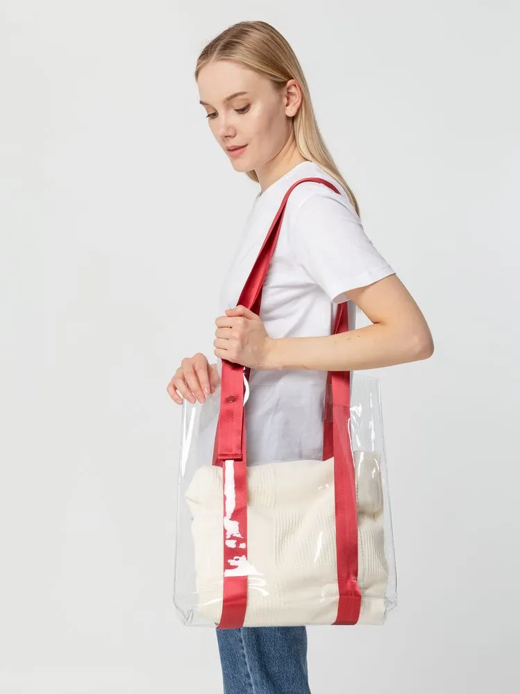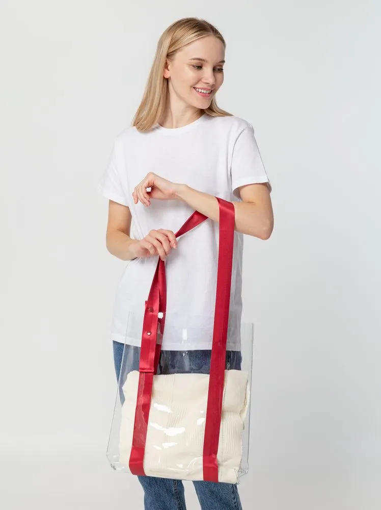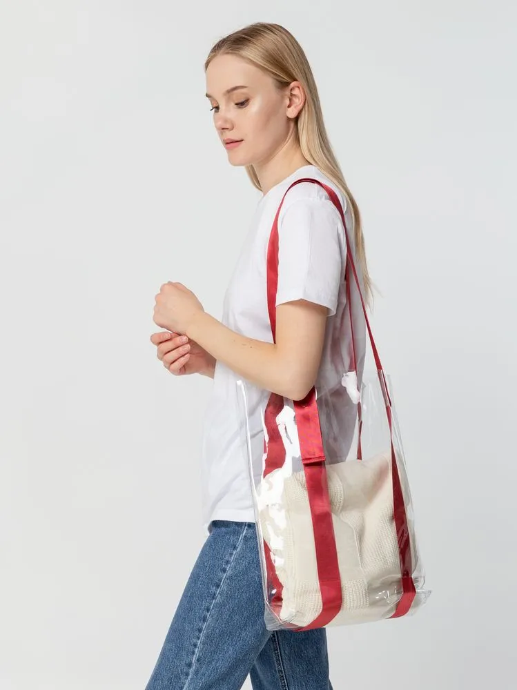 Прозрачные сумки никогда не выйдут из моды. А цветные ручки легко впишутся в брендбук и точно передадут настроение, которое хотелось бы транслировать.