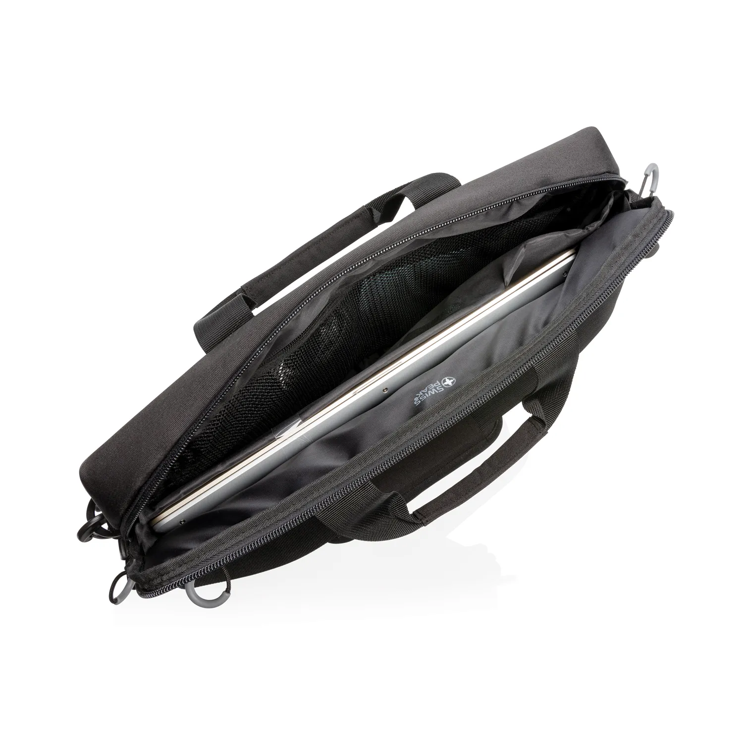 Тонкий компактный кейс с главным большим отделением превосходно подходит для переноса ноутбука 15.6” дюймов. Задний карман на молнии предназначен для портативных мышек, iPod, телефонов и ручек, передний карман – для других аксессуаров. Сумка оснащена карманом с RFID защитой и лямкой крепления к чемодану. На лицевую сторону нанесены светоотражающие элементы. Не содержит ПВХ.
