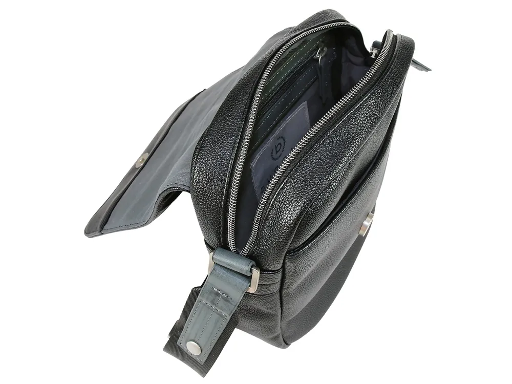 НАПЛЕЧНАЯ СУМКА МОТОБАЙК D | MOTO D Наша линейка рюкзаков и сумок МОТОБАЙК D | MOTO D, произведённых из высококачественного полиуретана, выполнена в привлекательном винтажном стиле. Чёрный и синий цвета гармонично сочетаются с чёрными тканевыми ремнями и серой полиуретановой отделкой. Аутентичная нашивка Bugatti эффектно украшает переднюю часть изделий, в то время как двойные швы подчёркивают спортивный характер коллекции. В серию входят удобные элегантные наплечные сумки и стильные вместительные рюкзаки. СВОЙСТВА: Внутренняя организация: отделение на молнии с карманом на молнии с защитой данных RFID и карманом-органайзером (открытый карман, 2 держателя для пишущих принадлежностей) Внешняя организация: передний открытый карман, задний карман на молнии, регулируемый плечевой ремень (до 150 см) Размер: 18 x 6 x 25 см Объём: 2 л Вес: 0,43 кг Материал: полиуретан