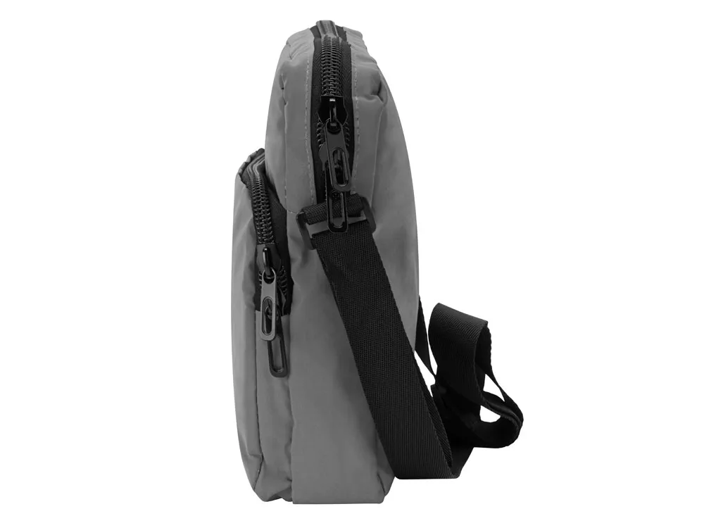 Светоотражающая сумка через плечо обеспечит дополнительную безопасность в темное время суток. Наружный карман на молнии для хранения мелочей. Ремень на плечо 140 см регулируется по длине.