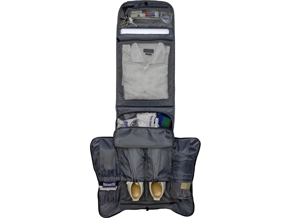 Рюкзак трансформируется в органайзер для одежды благодаря особой конструкции боковых молний. Идеален для путешествий, поездок на выходные и командировок. Упрощает упаковывание и хранение ваших вещей. Просто раскройте молнии, и рюкзак превратится в портплед. Подходит для 1 полного комплекта одежды, обуви и принадлежностей для путешествий. Ткань стойкая к намоканию и пятнам. - Потайной карман на спинке, - множество внутренних карманов, - светоотражающая полоса спереди для большей безопасности в темное время суток, - боковые наружные карманы повышенной вместимости на эластичной ленте, - USB порт, - карабин для ключей, - сетчатый карман на молнии, - ремень для крепления к ручке чемодана, - резинки на лямках для хранения мелочи, - лямки регулируются по длине.