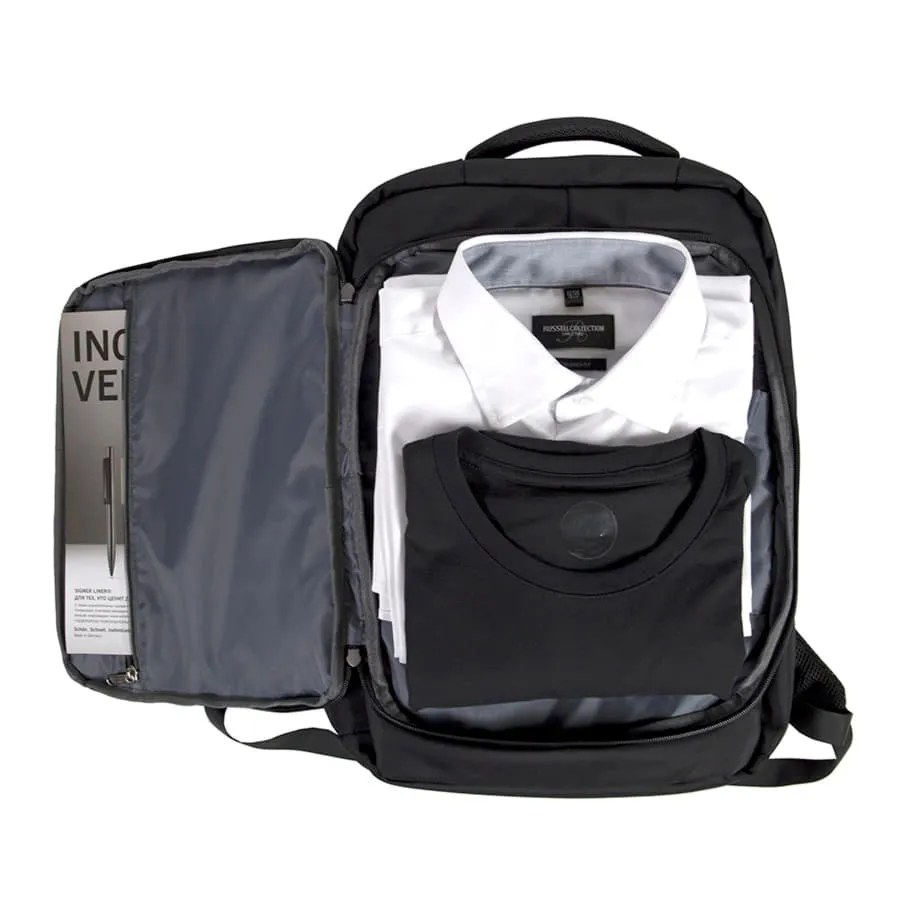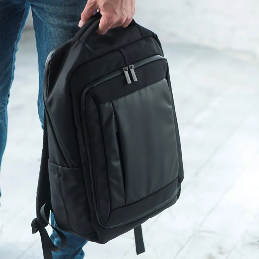 · Основная ткань: 100% полиэстер, подкладка: 100% полиэстер · Объём: 19 литров · Вмещает ноутбук 15" Описание: · Сочетание прочных и водоотталкивающих материалов 2х фактур: фактурный полиэстер и PU покрытие c anti-scratch эффектом · Оригинальный дизайн основной застежки рюкзака · Специальный RFID карман с системой защиты от несанкционированного считывания персональных данных · Функциональный наружный карман открывается на 180° как чемодан для удобства наполнения · Внутри укрепленный отдел для ноутбука с защитной тесьмой на липучке · Удобный карман - органайзер внутри · Водонепроницаемые молнии с лазерным кроем · Умный карман «Анти-вор» на спинке для крепления на выдвижной ручке чемодана · Два боковых кармана · Эргономичная спинка и лямки рюкзака из вентилируемого материала · Карман для проездных карт на лямке рюкзака · Лямки прошиты дополнительными стропами в быстро изнашиваемых местах, которые можно отрегулировать по длине и зафиксировать пластиковыми крепежами · Брендированные металлические пуллеры Bag Fly · Жаккардовый логотип Bag Fly внутри · Картонный ярлык Bag Fly · Внутрь рюкзака вложена сумка из нетканого материала для хранения · Упаковка: прозрачный пакет